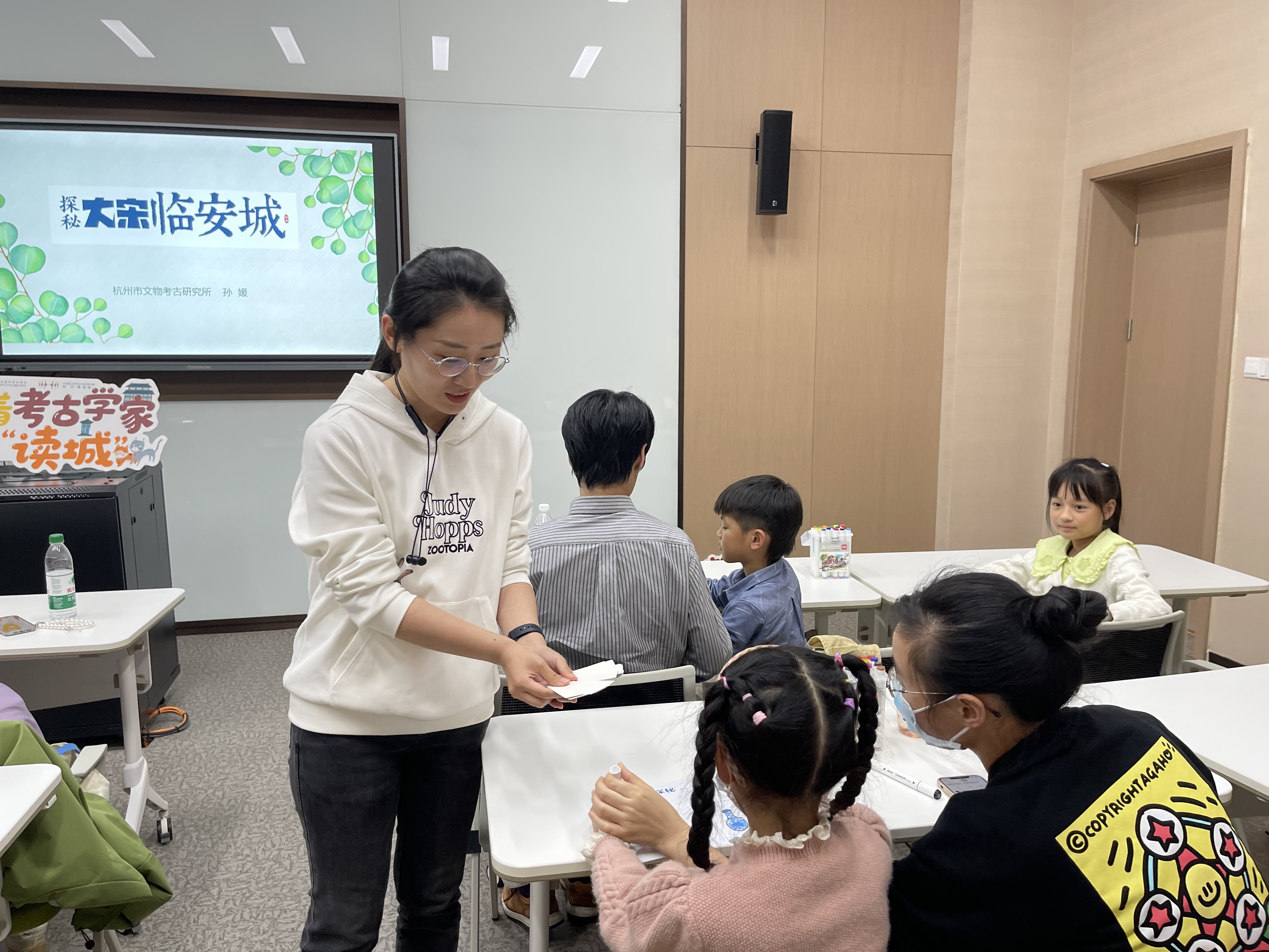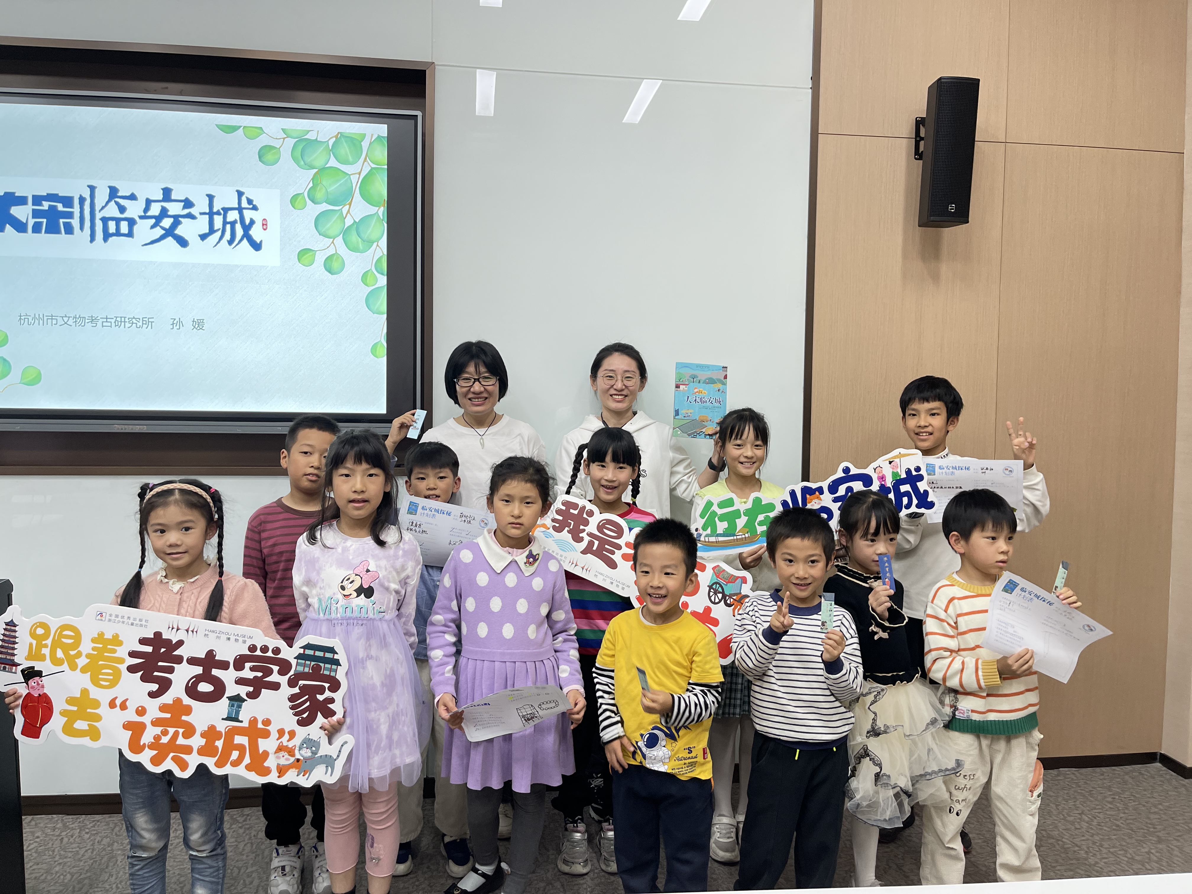 11月2日下午,浙江图书馆联合浙江少年儿童出版社推出的“童阅学堂”第8期——文化遗产普及绘本《探秘大宋临安城》新书分享会如期举办。该书作者、考古学者孙媛,编辑徐紫馨来到浙江图书馆之江馆,与现场36位小朋友及家长一起,从杭州城内一处一处的考古遗址发掘现场,来了解脚下这座“人间天堂”的历史与文化,通过阅读完成了一次贯穿古今的City Walk(城市漫步)。