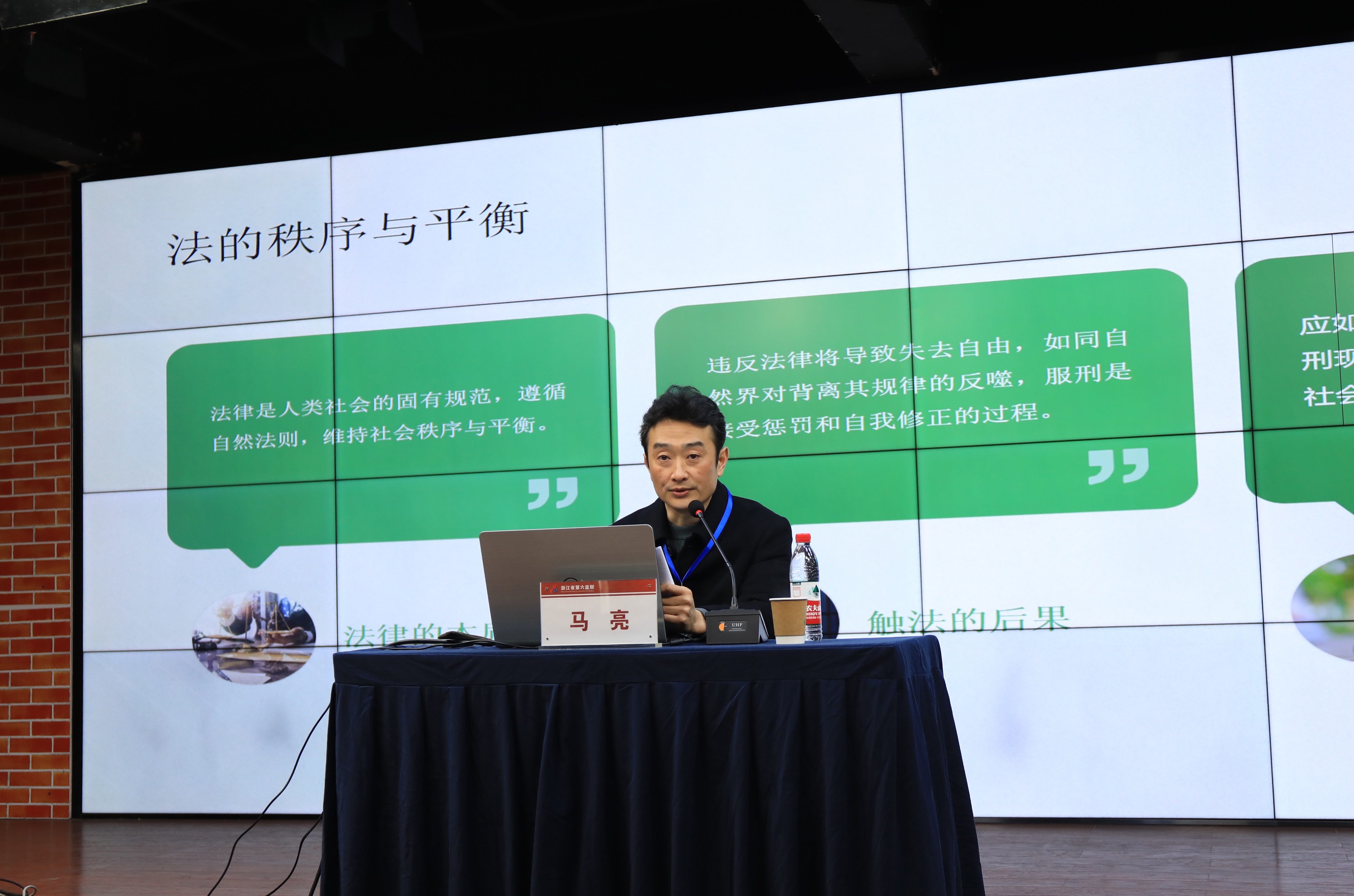 讲座伊始,马亮法官首先着重强调了法律的重要性。“法”意味着秩序与平衡,是人类社会的固有规范。一旦违反法律将失去自由,服刑是接受惩罚和自我修正的过程。他以老庄哲学中的“道法自然”为切入点,鼓励新入监的服刑人员要“顺其自然”,接纳当下处境,适应监狱生活,积极重塑自我。在积极改造、争取减刑的同时,应当遵循“无为而治”的思想,采取合理合法、脚踏实地的方式,而不是用不正当的手段去强求结果。
