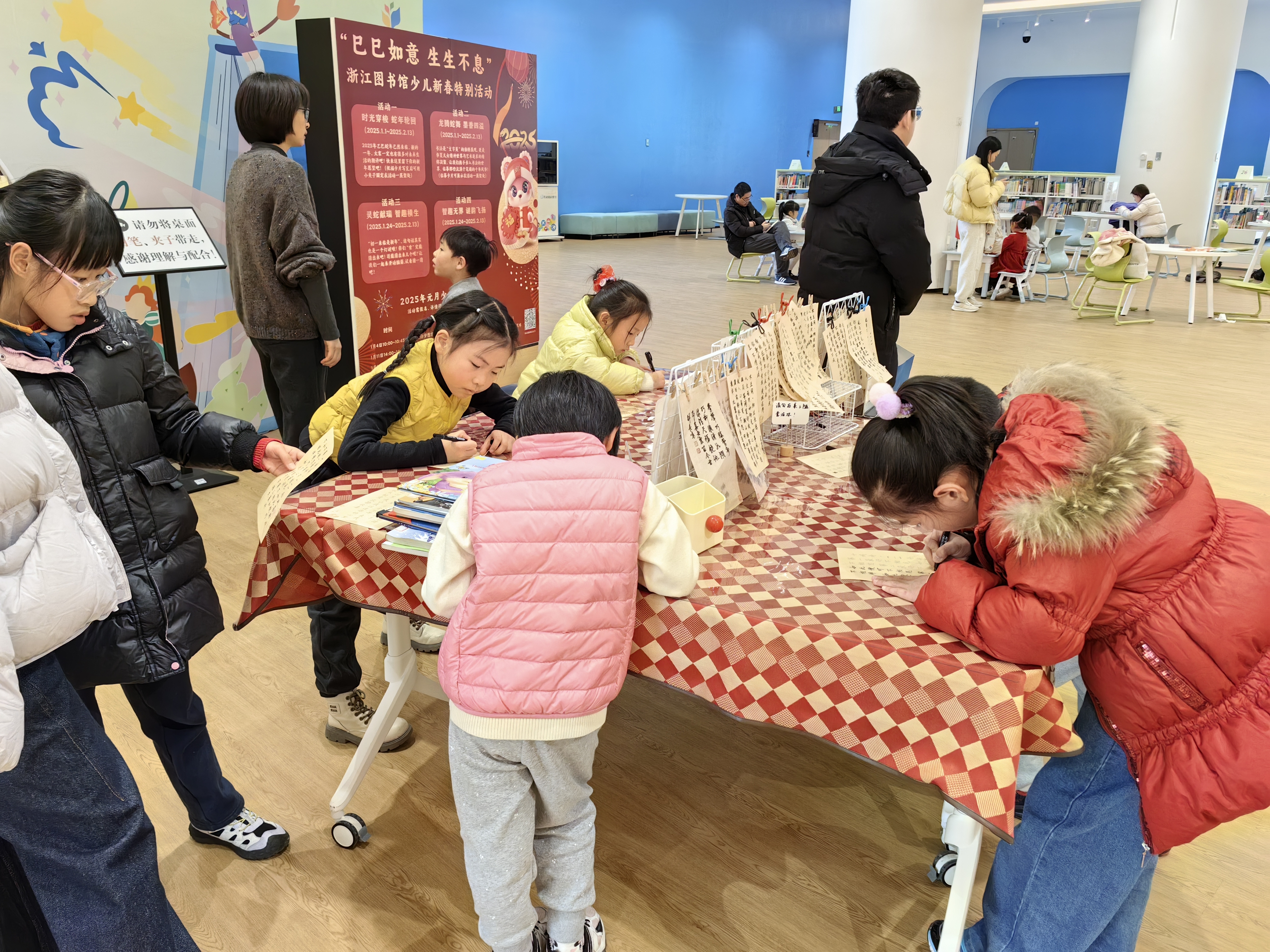 2025年1月1日至2月13日,浙江图书馆之江馆二楼少儿借阅区洋溢着浓浓的年味与书香。以“巳巳如意 生生不息”为主题的新春少儿特别活动吸引了约1.8万名读者线下参与,通过四大特色文化活动,为读者献上了一场传统与现代交融的文化盛宴。