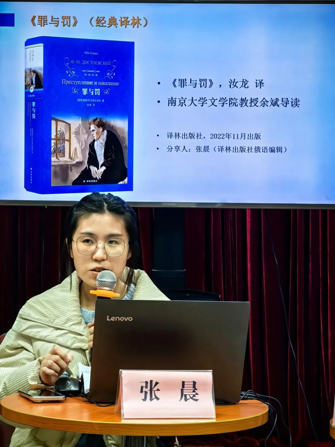 译林出版社《罪与罚》责任编辑张晨从编辑视角解读《罪与罚》及其作者陀思妥耶夫斯基。她的分享从“拉斯克尔尼柯夫为什么杀人?为什么自首?”这两个问题入手,结合19世纪俄国社会历史背景,分析了俄罗斯独特的民族性格和文学现象,探讨了《罪与罚》深刻的思想内涵与现实意义。