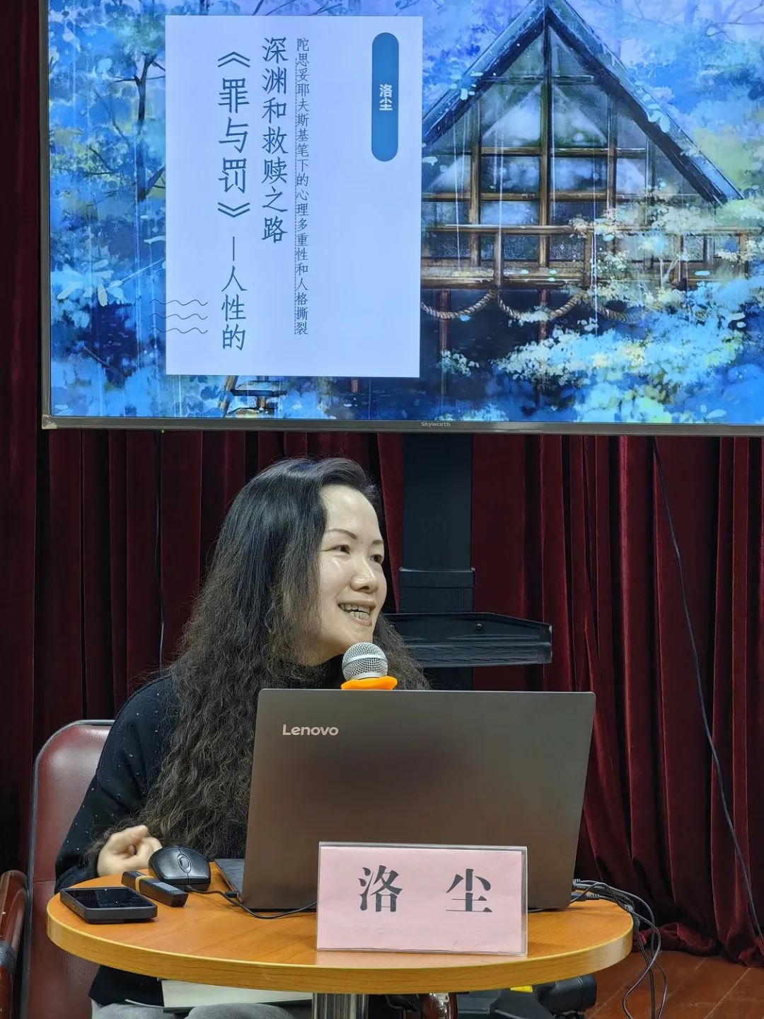 作为主讲人,读书岛书友洛尘从一位心理医生的角度,着重分析了小说人物的心理多重性和人格撕裂。她认为,陀思妥耶夫斯基在《罪与罚》中用大部分篇幅呈现了拉斯柯尔尼科夫杀人后的内心煎熬,更多地体现内心“罚”的过程,展示了人性的深渊和救赎之路。