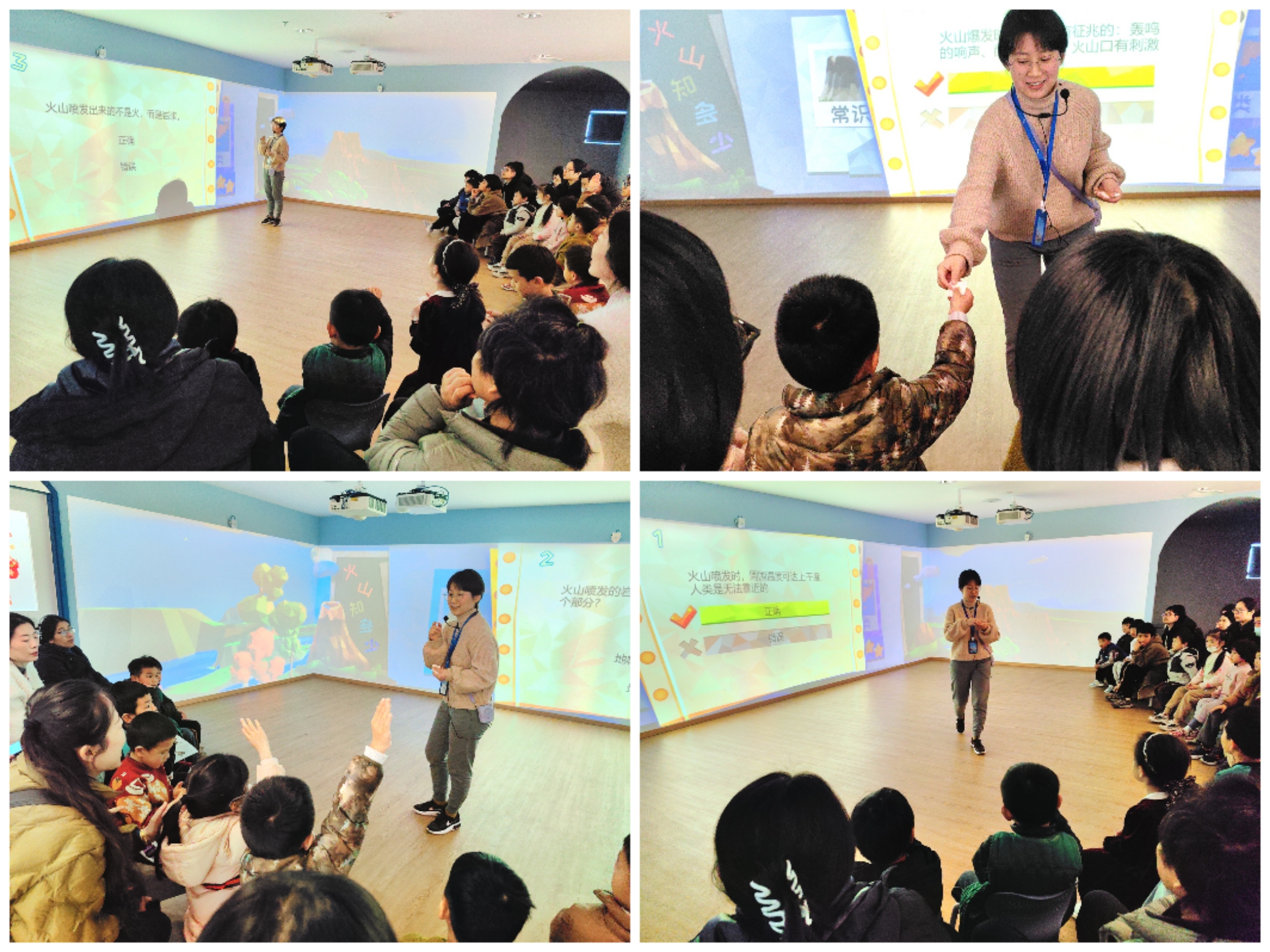活动期间,主讲馆员引领小读者们一同探究世界七大洲具有代表性的火山,并且借助“火山知多少”的知识竞答活动,进一步加深读者对火山的认知。此外,通过“火山大爆发”和“火山寻宝”这两个互动小游戏,小读者们在欢快的游戏氛围里深刻领悟火山喷发的原理以及火山喷发带来的影响。到场的读者们,无论长幼,都在这种寓教于乐的氛围中,积极主动地投入到自然科普知识的学习中,兴致勃勃、热情洋溢。