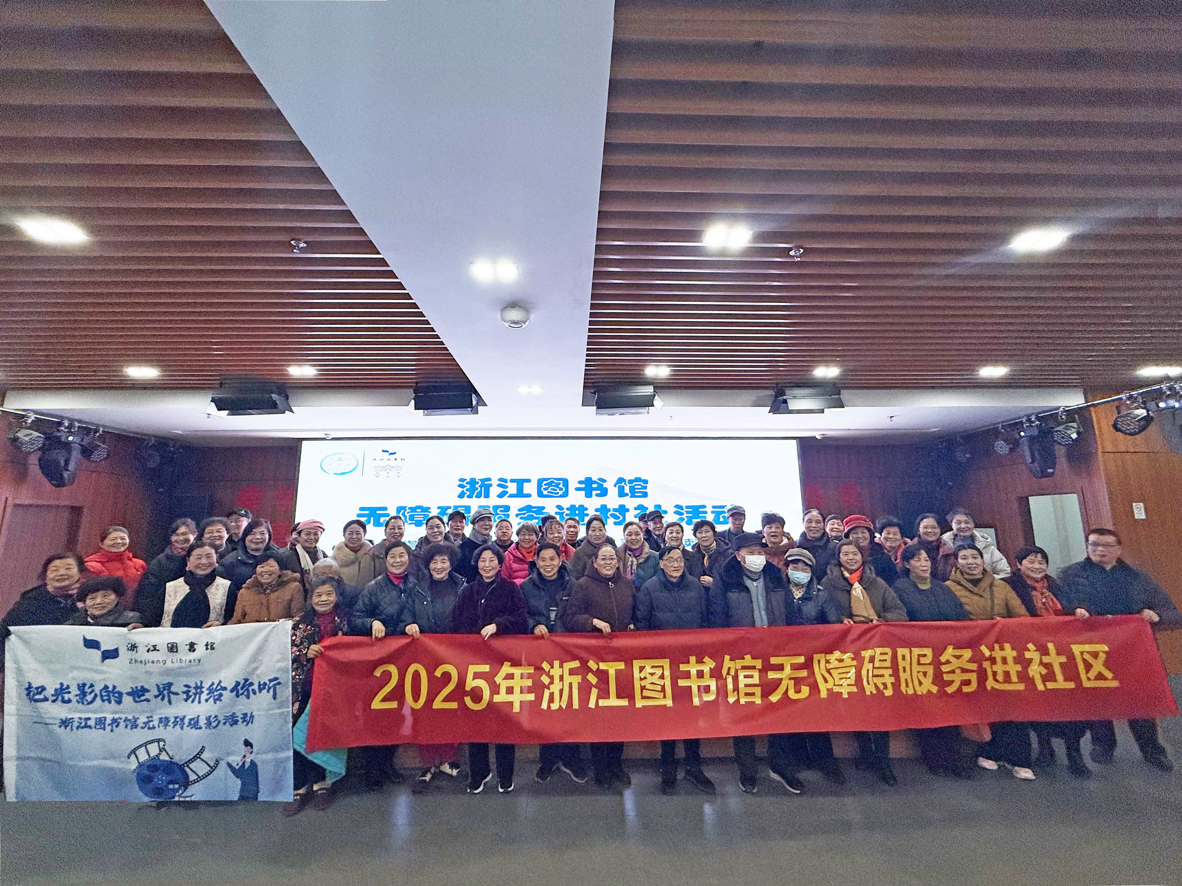 为推进无障碍服务深入基层,满足乡村(社区)视障人士、老年人等特殊人群的文化需求,浙江图书馆启动2025年无障碍服务进村社系列活动。2月25日下午,浙江图书馆联合西湖区转塘街道办事处开展首期无障碍观影活动,百余名来自村(社区)的视障人士、银发长者齐聚一堂,在特别制作的视听盛宴中共享光影魅力。