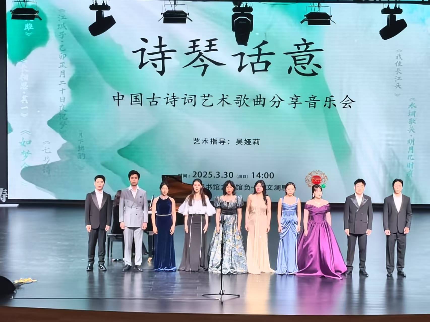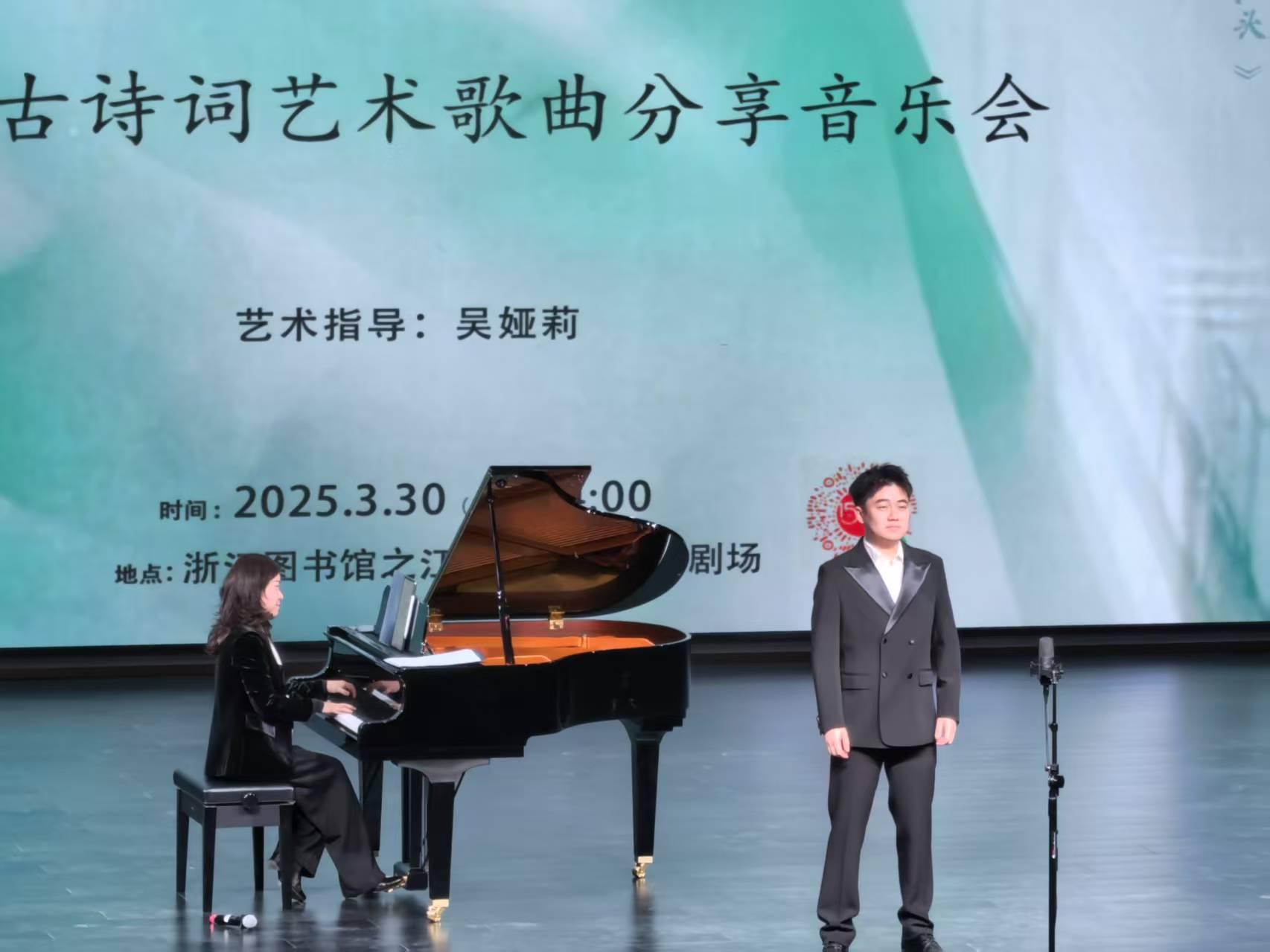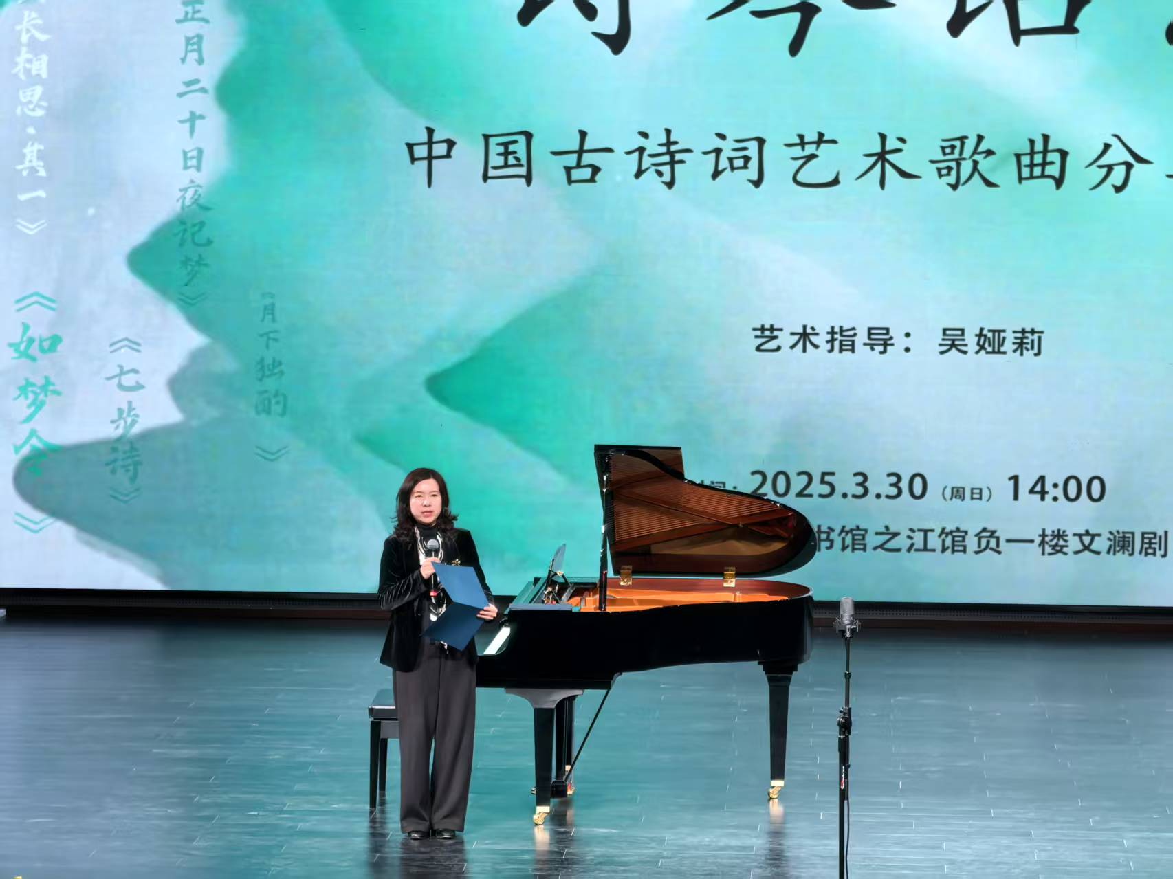 2025年3月30日下午14:00,在浙江图书馆之江馆文澜剧场内,“诗琴话意”中国古诗词艺术歌曲音乐会拉开帷幕。作为浙江图书馆与浙江音乐学院联合打造的“不孤独的音乐”系列首场活动,12首经典诗词经现代作曲技法焕新,在钢琴与声乐的交织中重焕生机。