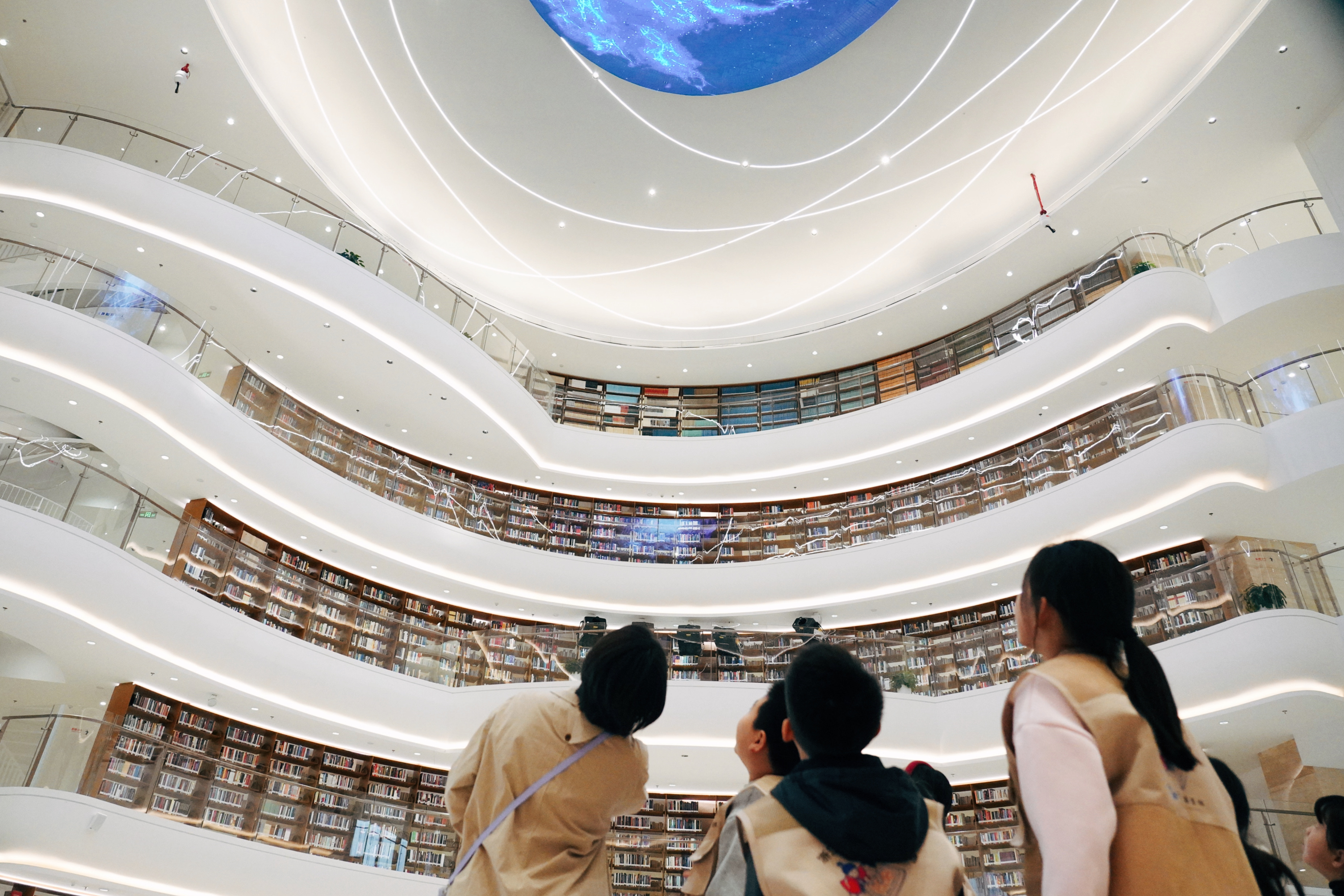 在老师的带领下,小朋友们开启了图书馆的探索之旅。从一楼到二楼,他们了解了书架分类排序的奥秘以及服务台的功能,还通过知识大阶梯旁的展品,见证了书籍演变的历程。老师生动的讲解和实物的展示,让孩子们深刻感受到书籍承载的中华文明之重。