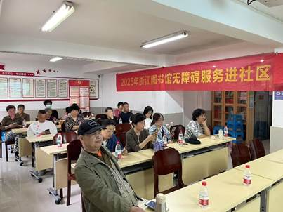 浙江图书馆2025年无障碍服务进村社活动自启动以来,受到街道居民等多方的关注与好评。为进一步提升本系列活动的良好效应,扩大服务范围,浙江图书馆无障碍服务持续开展,分别于4月9日和29日走进西湖区转塘街道美院社区和紫霞社区,为共计五十余名社区居民送去贴心的无障碍图书馆服务。