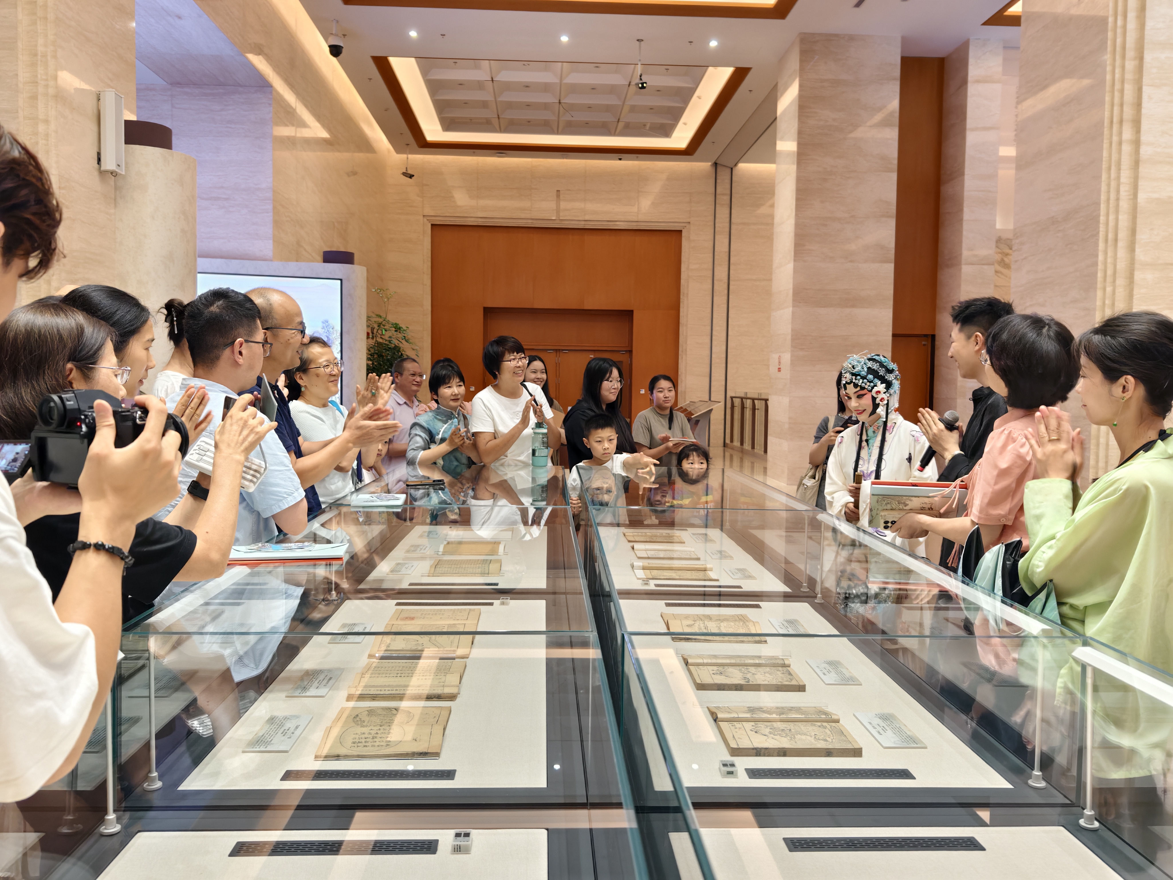 “在古籍展厅里唱昆曲,不是简单的形式叠加,而是让古籍上的文字舞动起来,焕发新的生命力。”杨振一老师的阐释道破活动内核——当《牡丹亭》的唱词与展柜里的明刻本形成声影共振,那些沉睡的古籍文字便化作舞台上的眼波流转、折扇开合。浙江图书馆以“传统为体,创新为用”的理念,正通过此类跨界实践,让文化传承不再是单向的守护,而成为古籍与当代生活的双向奔赴。从文献纹样转化为文创丝巾,从纸页戏文到活态演绎,这场文化实验印证着:唯有让传统艺术在现代语境中找到落点,才能让六百年风雅真正融入当下,在创新中延续文明的生命力。