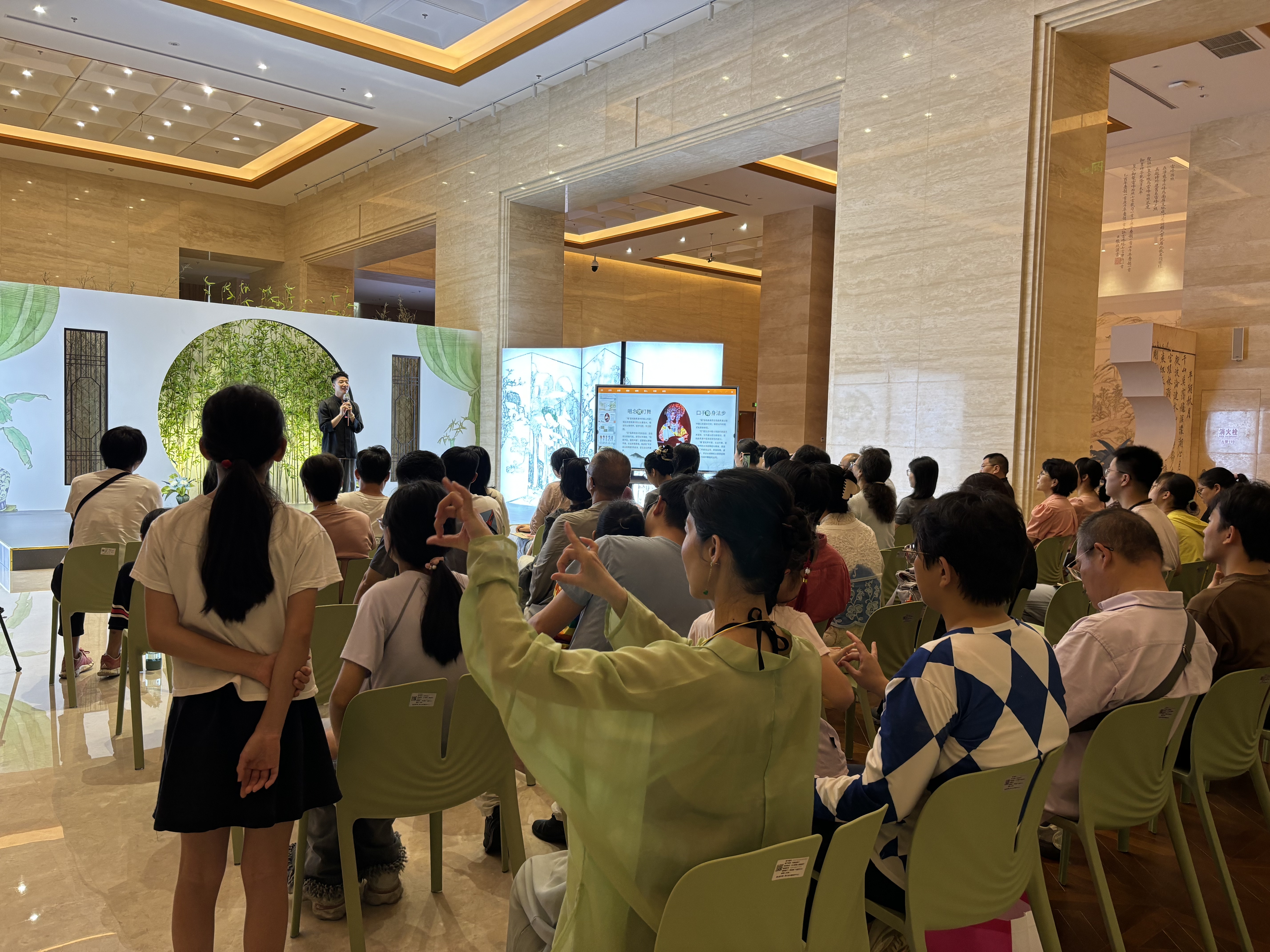 在互动教学环节,杨振一老师带领观众学习“口手眼身步”“唱念做打舞”等四功五法在生活中的化用,让零基础观众也能通过“气沉丹田”的呼吸法和“水袖抛收”的肢体语言,理解戏曲“无声不歌,无动不舞”的美学内核,引起了读者朋友们的极大兴趣,台上台下双互动,连4岁半的小朋友都学得津津有味。