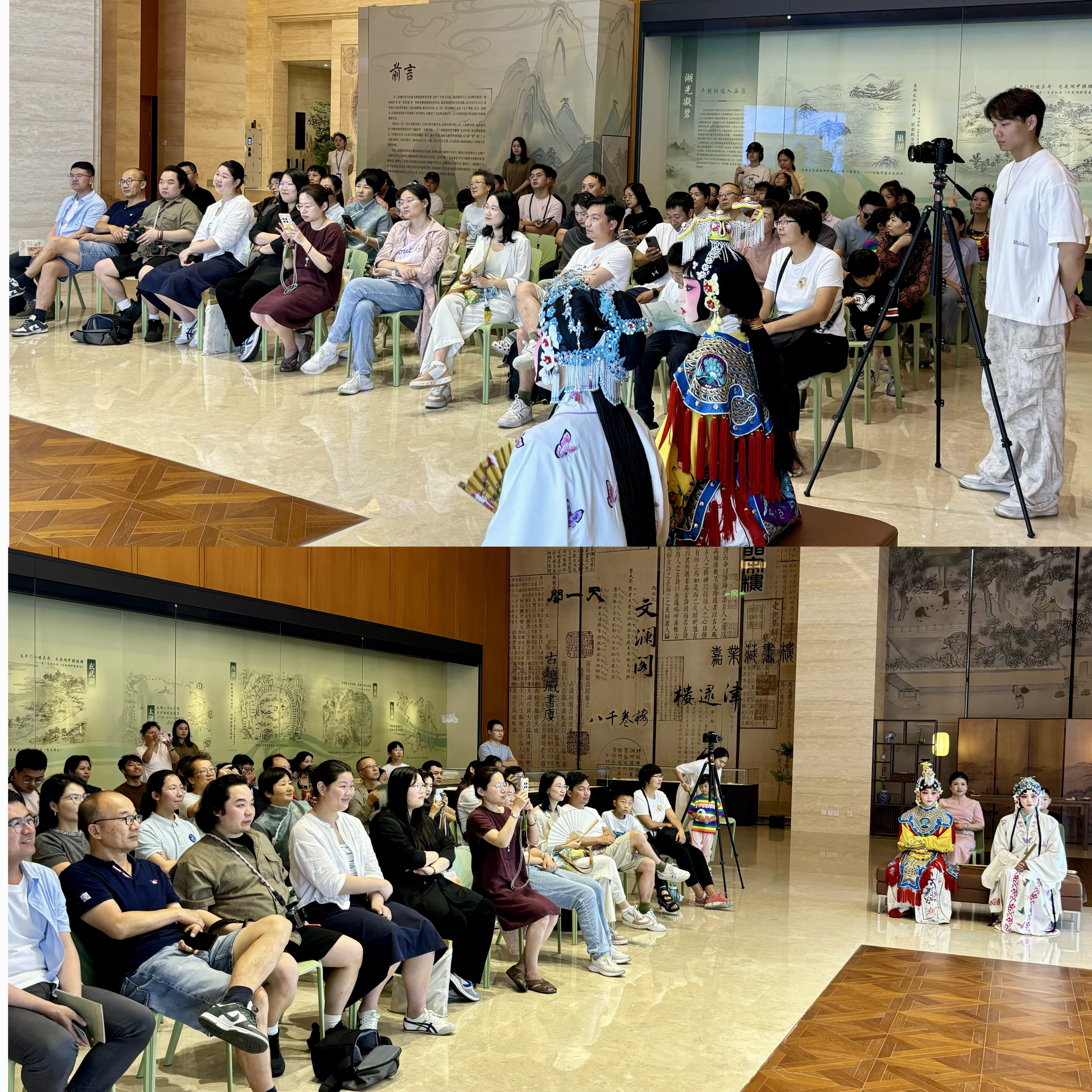 活动现场,杨振一老师以文献展中的《牡丹亭》刻本为引,用“戏画联动”的创新形式解读昆曲美学,让观众感受昆曲艺术与江南文化的深度交融。他从“百剧之师”昆曲的六百年源流讲起,揭示昆曲如何滋养京剧等剧种的基因密码。同时揭秘京剧在清代融合徽剧、汉剧并兼收昆曲精华,蜕变为国粹的传奇历程。当观众凝视着展柜里的戏曲版画精品及工尺谱,耳畔同时响起杨振一老师演绎的同题材唱段时,古籍中的文字突然有了声音与姿态。