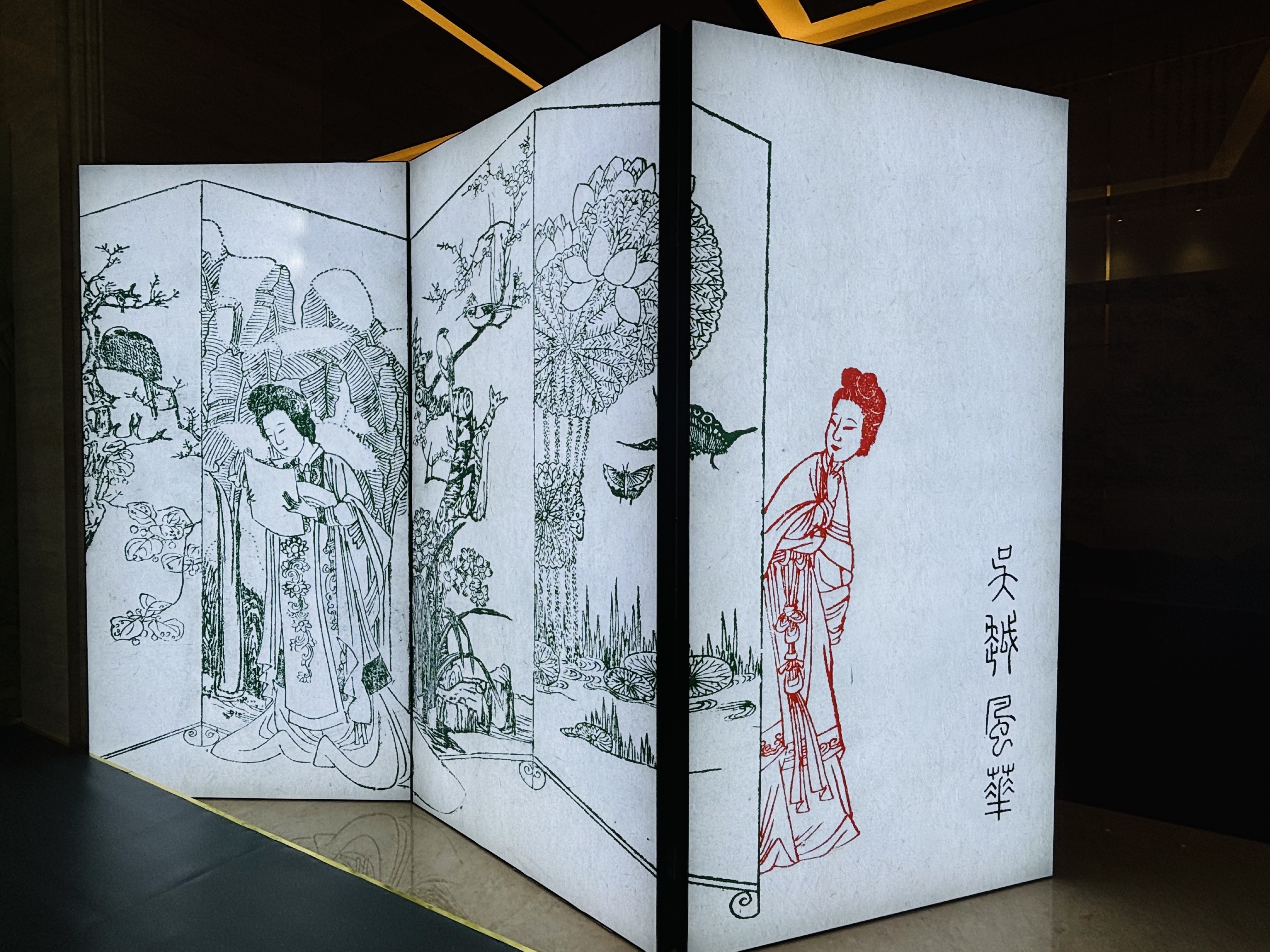 作为活动彩蛋,参与互动的观众获赠文献展限定“戏曲纹样丝巾”,其图案取自浙江图书馆藏《西厢记》中陈洪绶所绘的“窥简”场景。当细腻的明代版画纹样化作轻盈丝巾上的现代设计,古籍中的仕女情思与当代审美完成了一场跨越时空的对话。更令人沉醉的是,杨老师携学员演绎的戏曲片段唱念做表(表演)委婉动听,水袖翻卷间,让观众恍然惊觉:原来古老的昆曲从未远离,它就藏在举手投足的烟火气里。