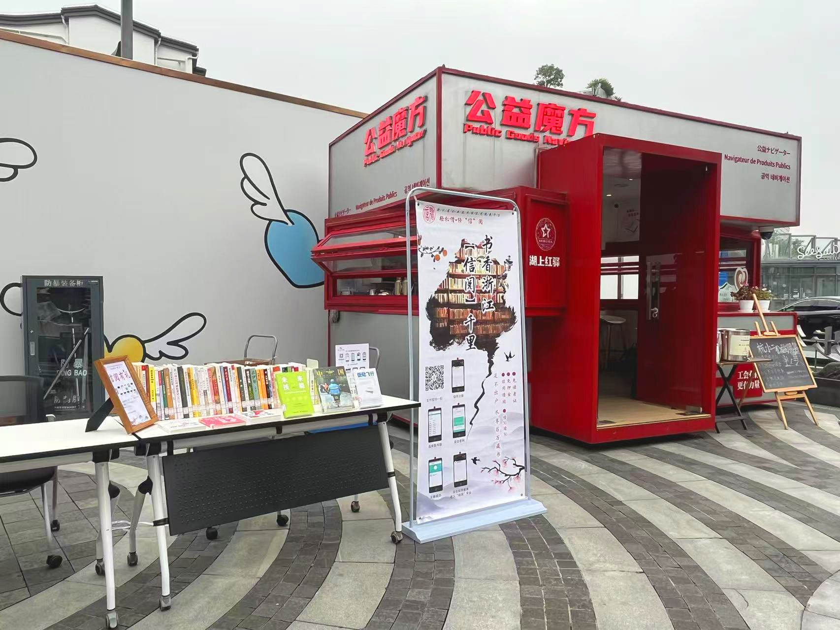 2025年6月12日,在湖滨in77公益魔方阅读驿站试运行期间,为更好宣传阅读驿站的公共文化服务功能,将阅读资源送达基层群众身边,浙江图书馆与杭州市上城区湖滨街道办事处携手,隆重推出“书香润心・法护权益・剧享人生——湖滨商圈产业社区主题服务日”活动,为商圈商户、市民、游客及新就业群体提供一场“文化充电”盛宴。