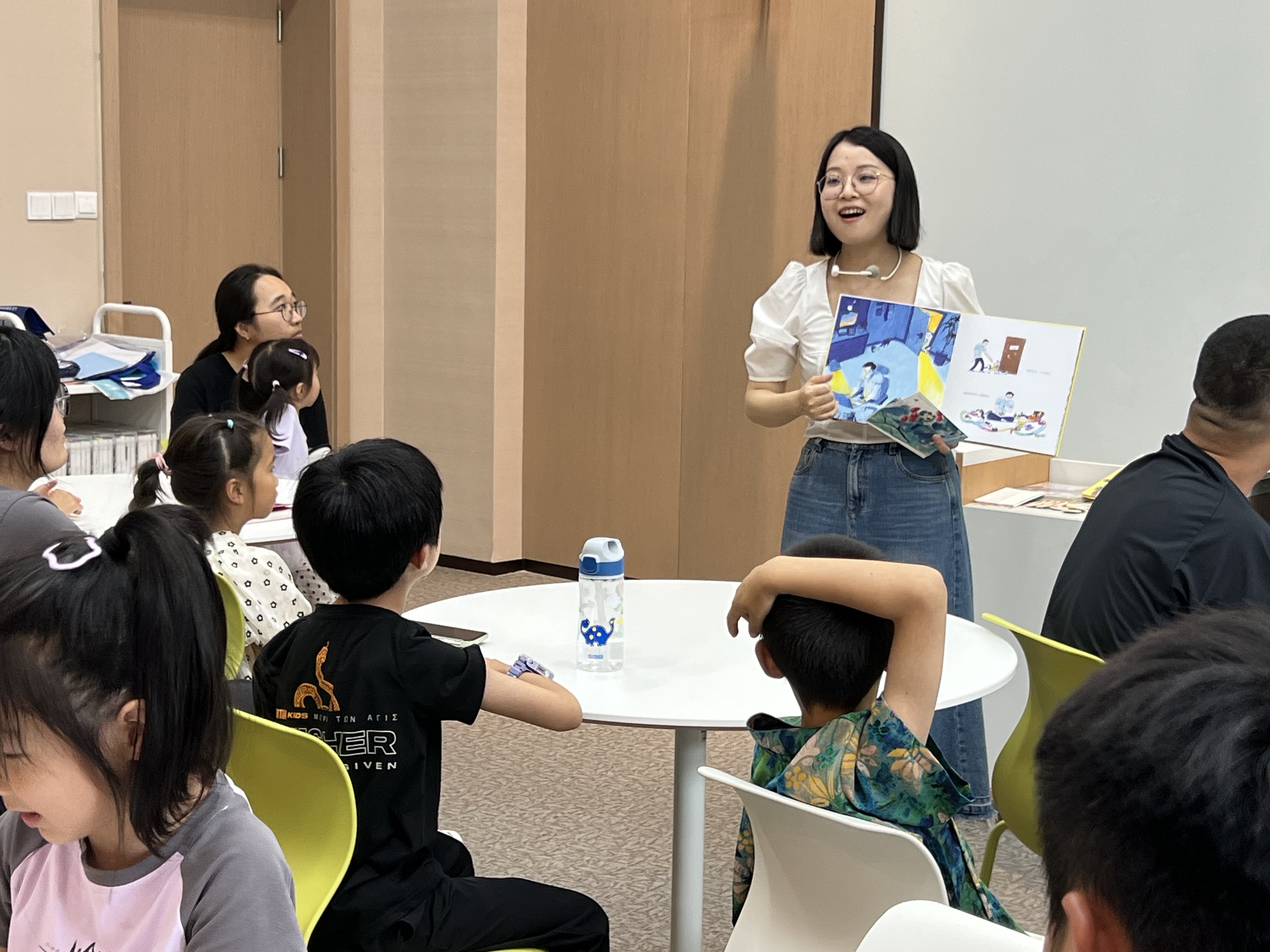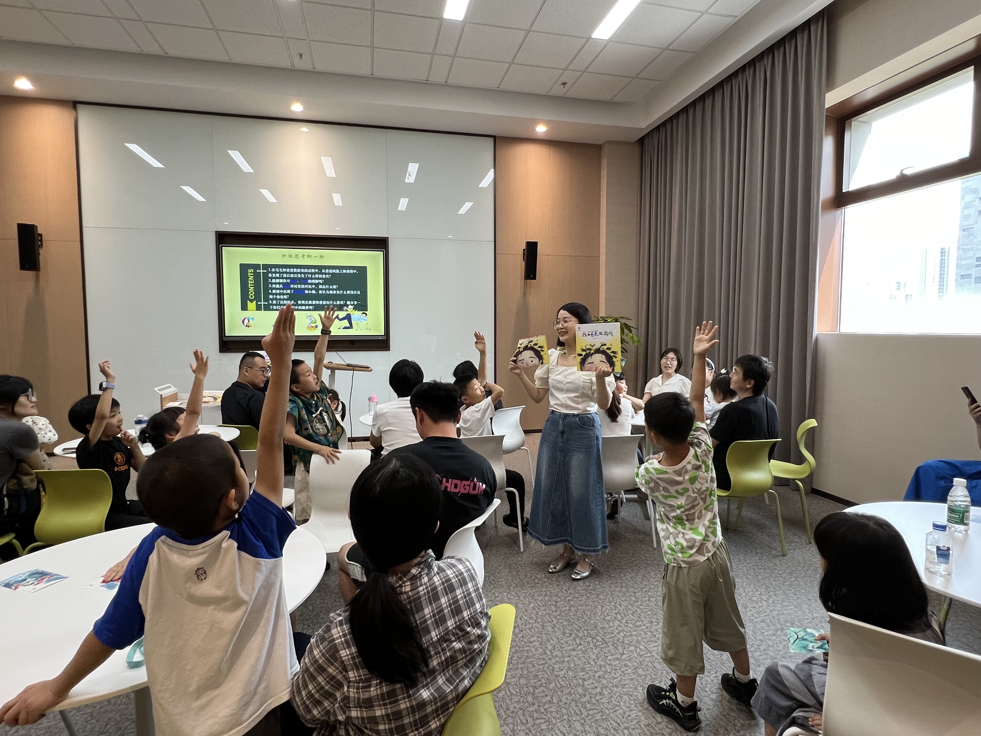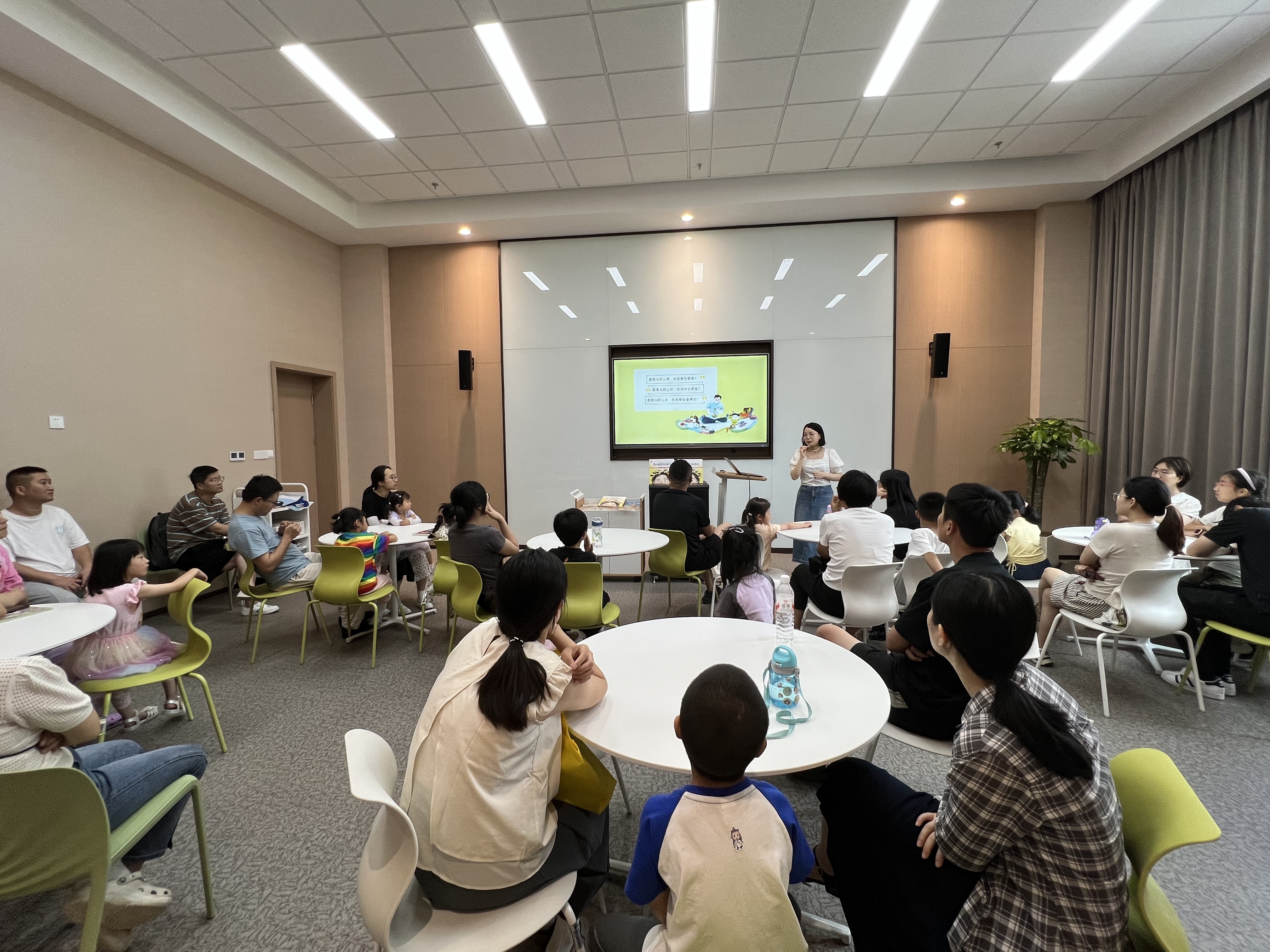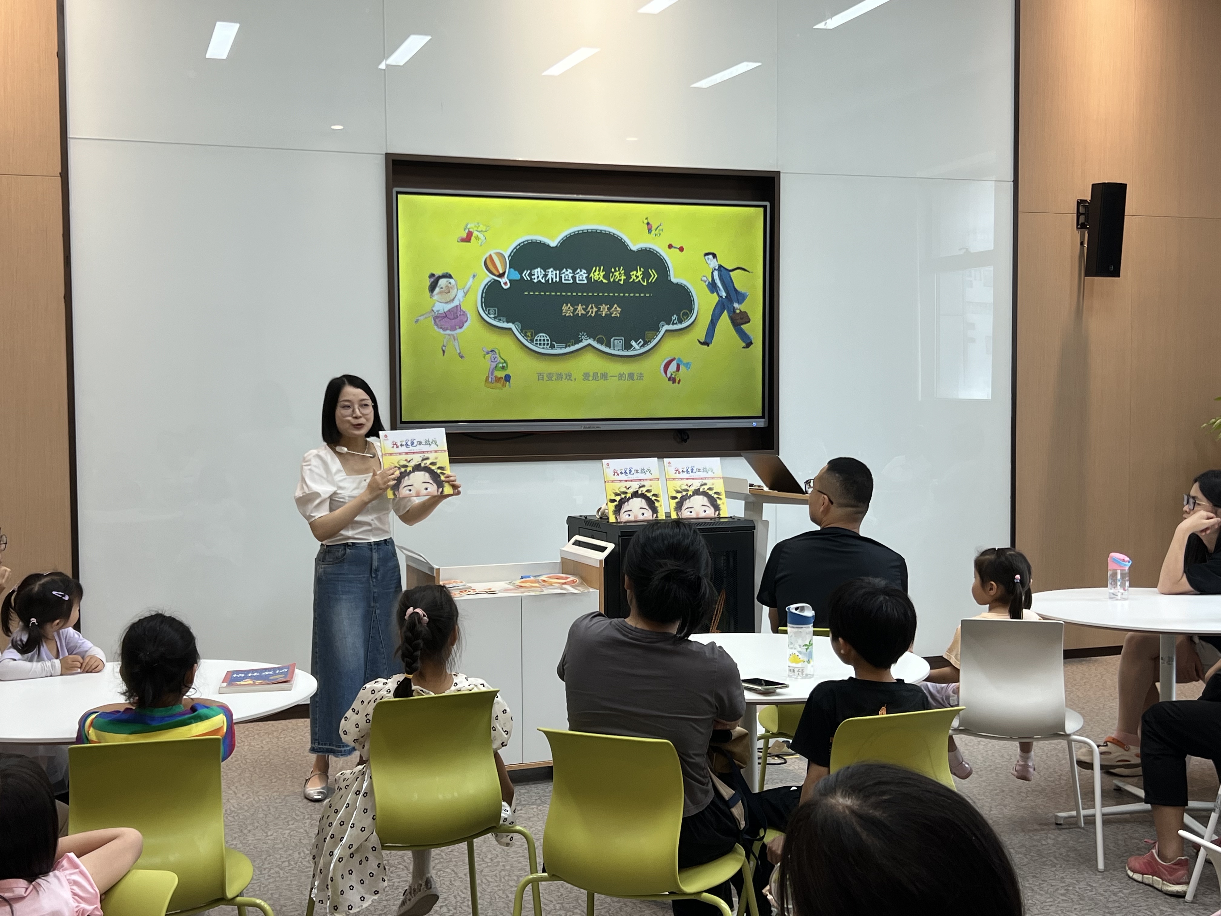 2025年6月14日下午,本年度第5期“童阅学堂”在浙江图书馆之江馆阅读会客厅顺利开展,来到现场的近40位小读者和家长朋友们,在浙江少年儿童出版社文学出版分社编辑黄晨屿的讲述下,共同欣赏了这本来自“动物小说大王”沈石溪的首部原创儿童绘本《我和爸爸做游戏》。