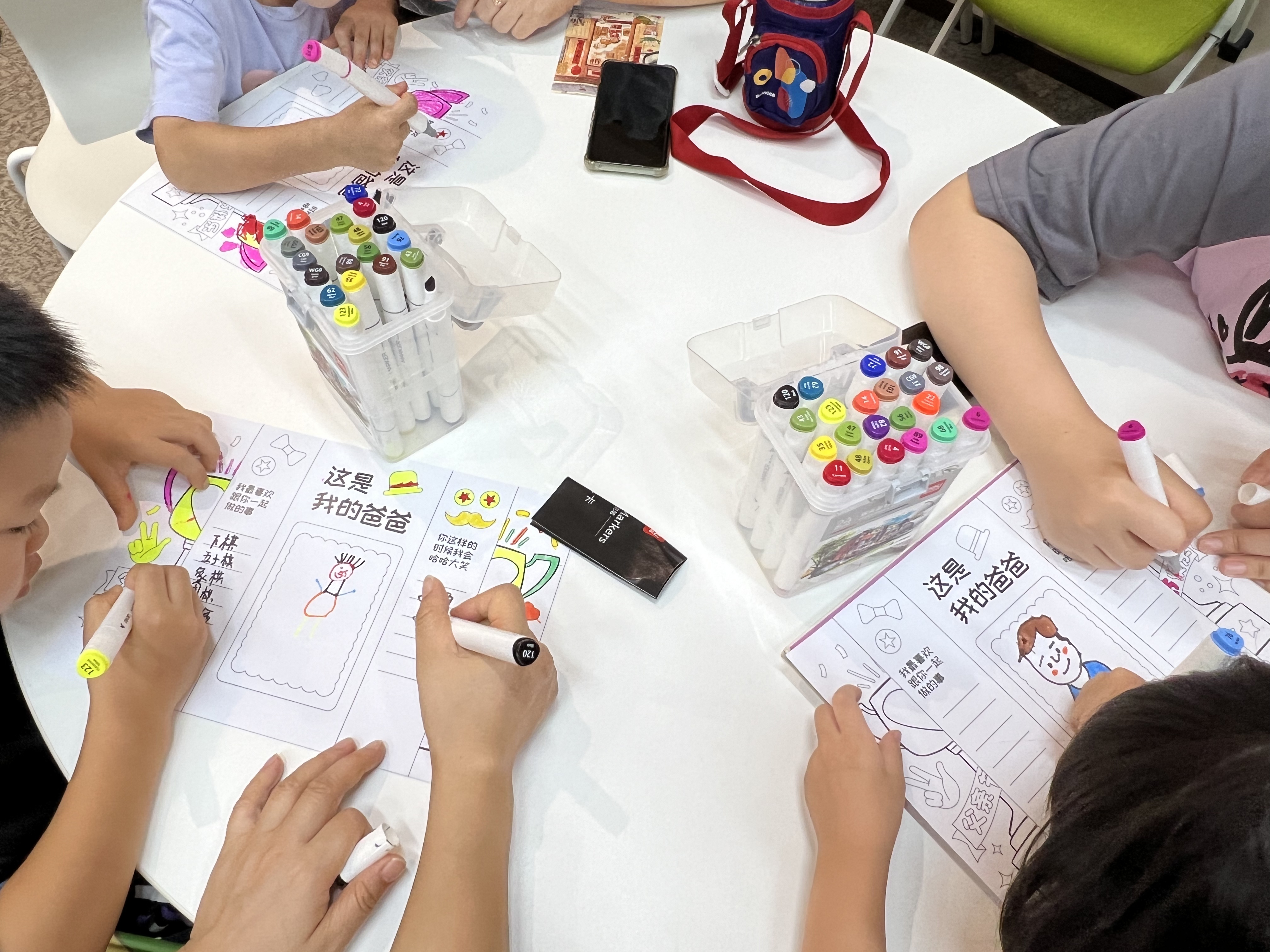 而活动当天也正临近父亲节,小读者们亲手用画笔在纸上画下对父亲的爱,诠释着他们平时未能说出口的感情。