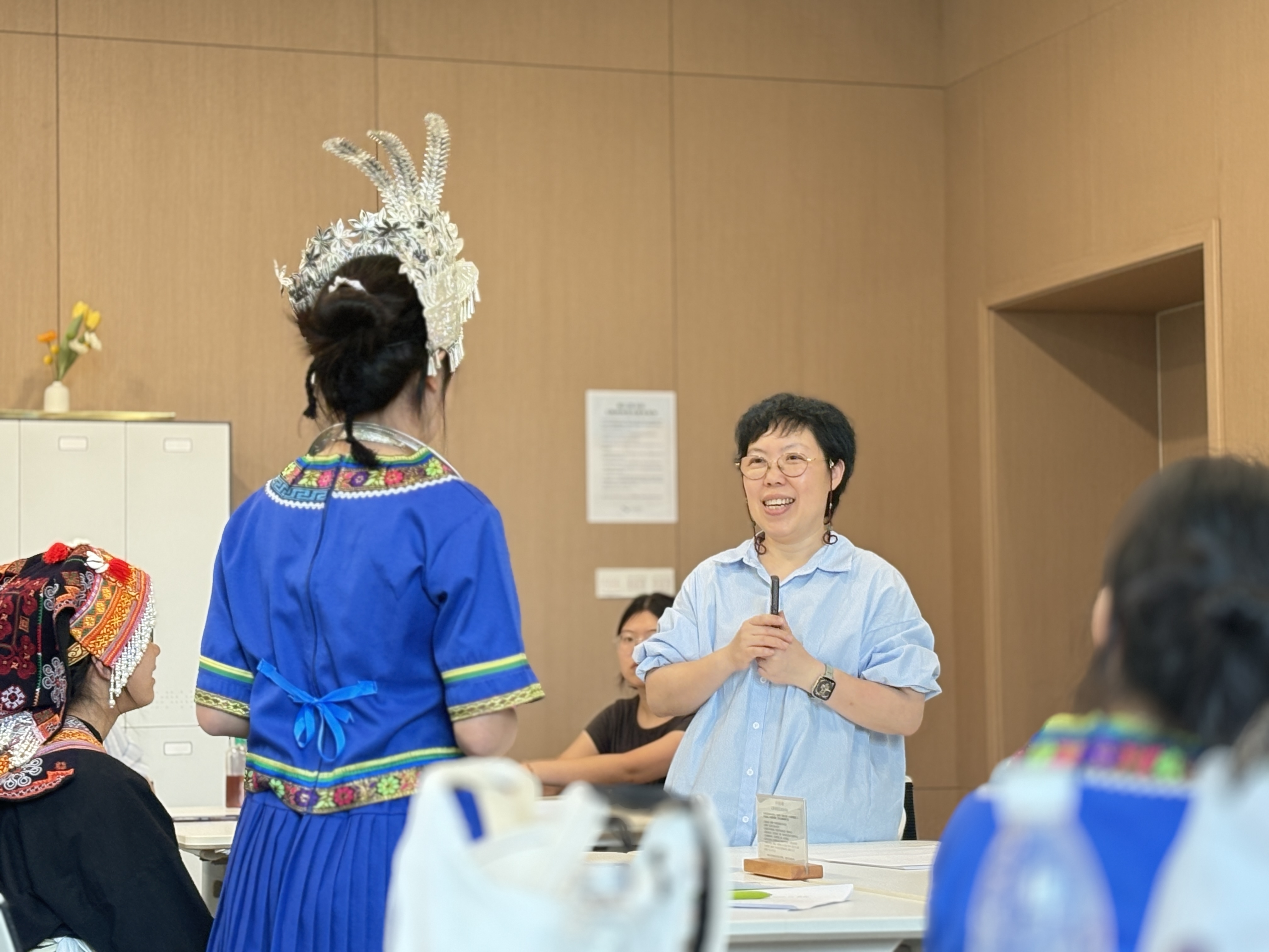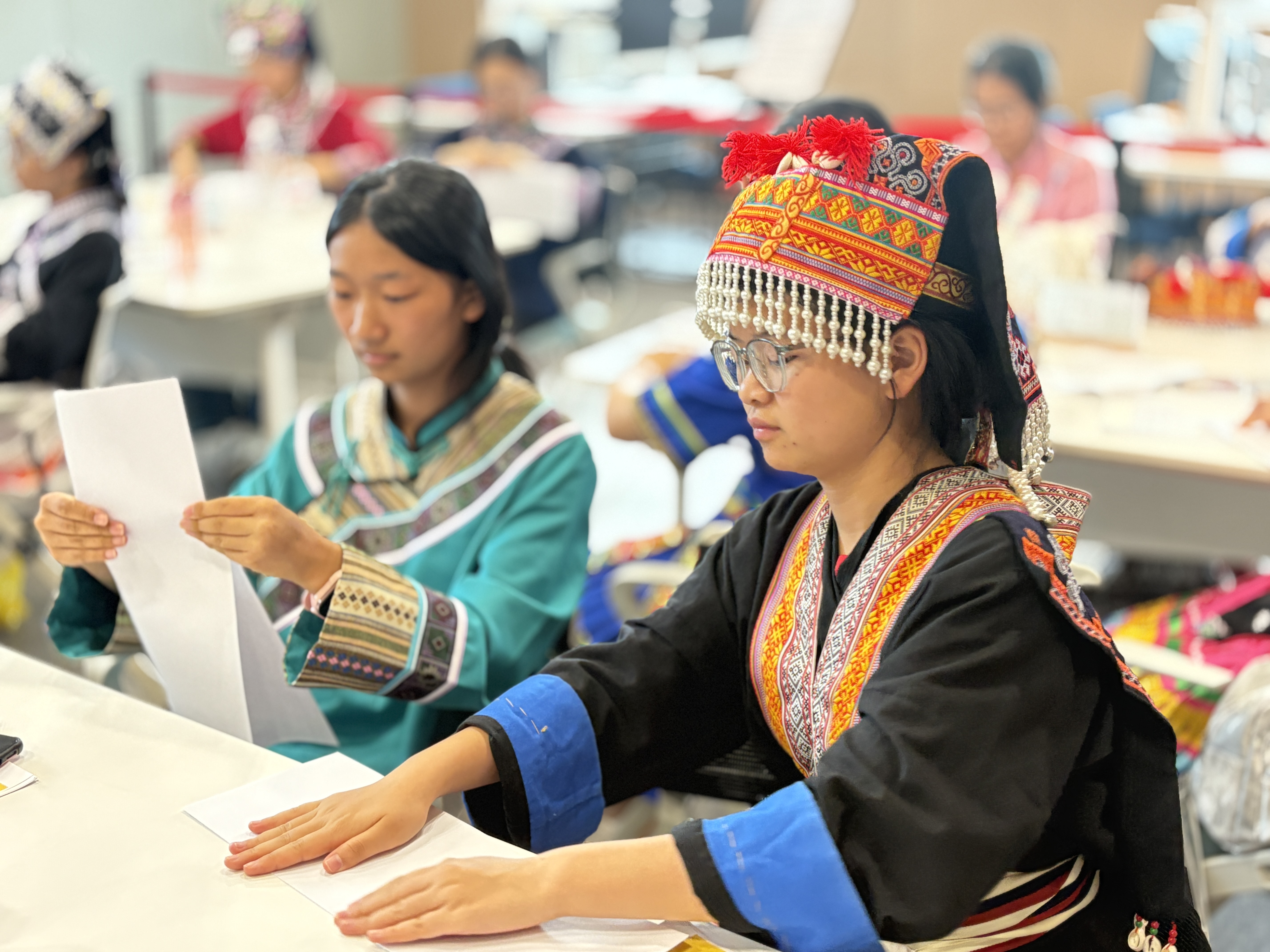 课程高潮落在“豆本”制作环节。女孩们将A3纸折叠成手掌大小的书册,用画笔勾勒家乡记忆——苗绣的花纹、布依族的梯田、毛南族的花竹帽在纸页间流淌。