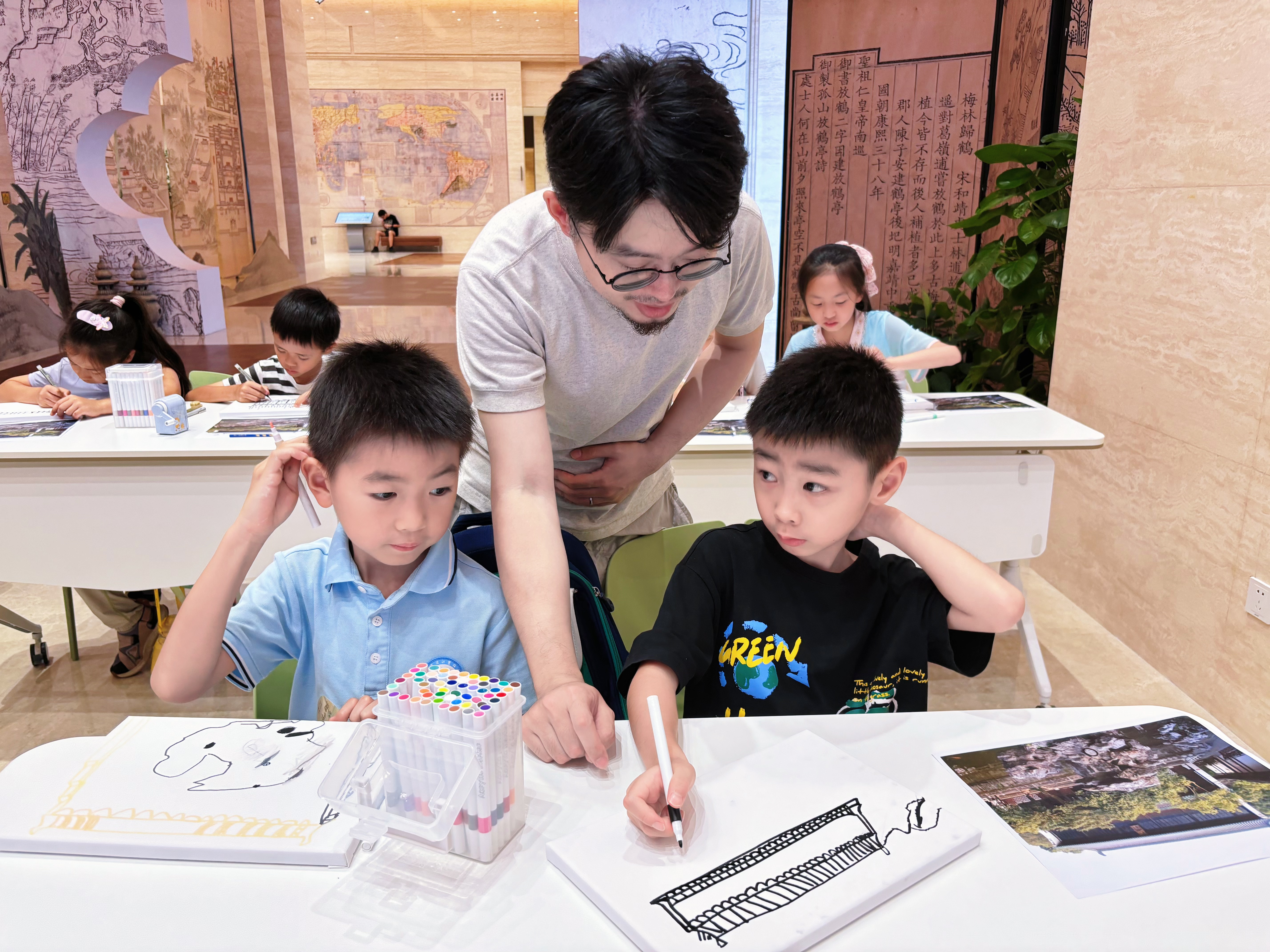 当孩子们抱着画框走出图书馆,阳光透过彩纸,在地面投下斑驳的光影,像极了藏书楼的窗棂在晃动。那些课堂上听到的建筑密码,那些画笔下流淌的奇思妙想,那些关于“如何守护”的认真思考,就这样跟着他们回了家。
