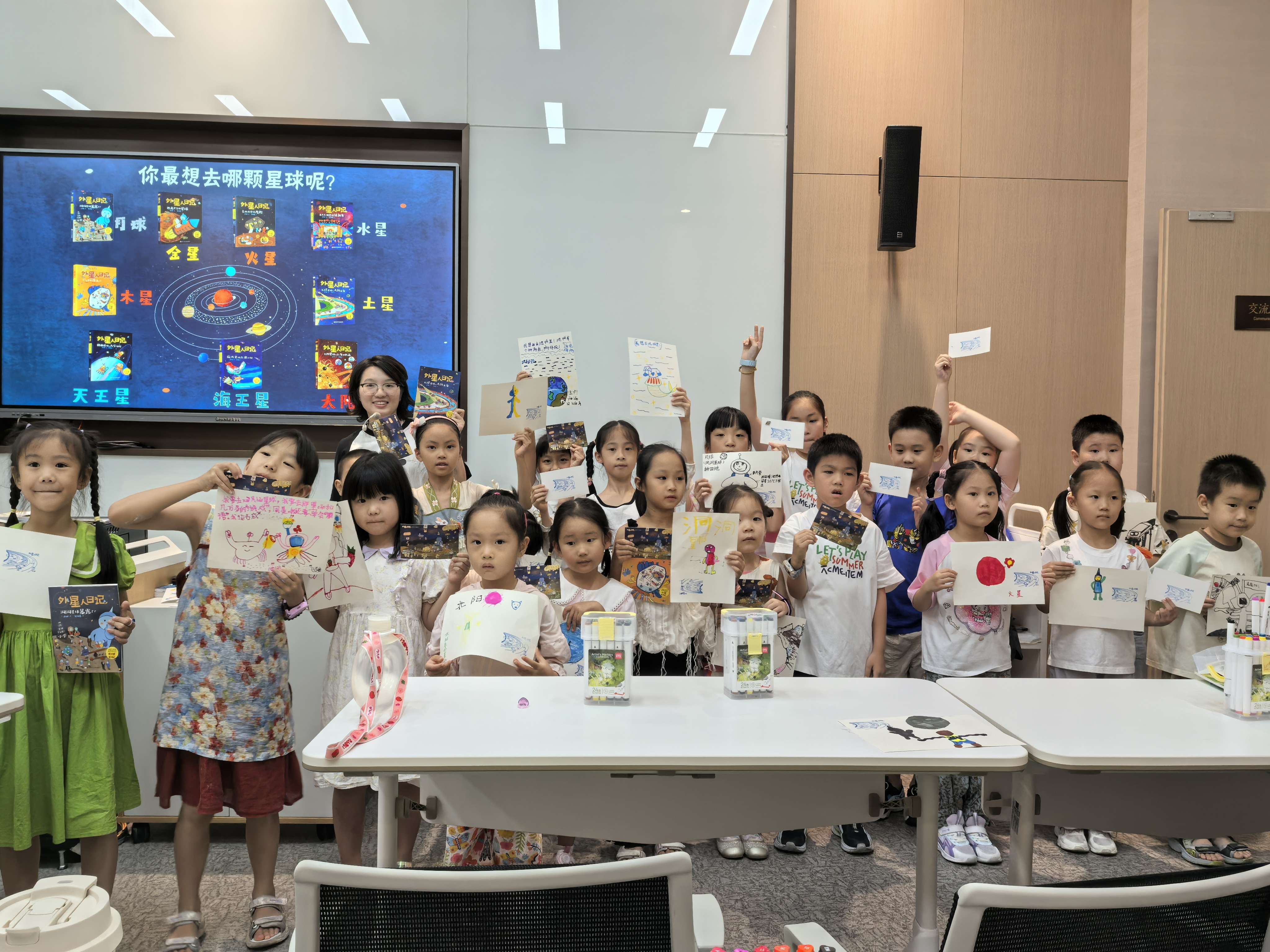 2025年8月23日下午,在50余位小读者和家长朋友的翘首以盼中,浙江少年儿童出版社的童书编辑卢科利再次来到浙江图书馆之江馆交流空间(二),为大家分享《外星人日记》系列图书。