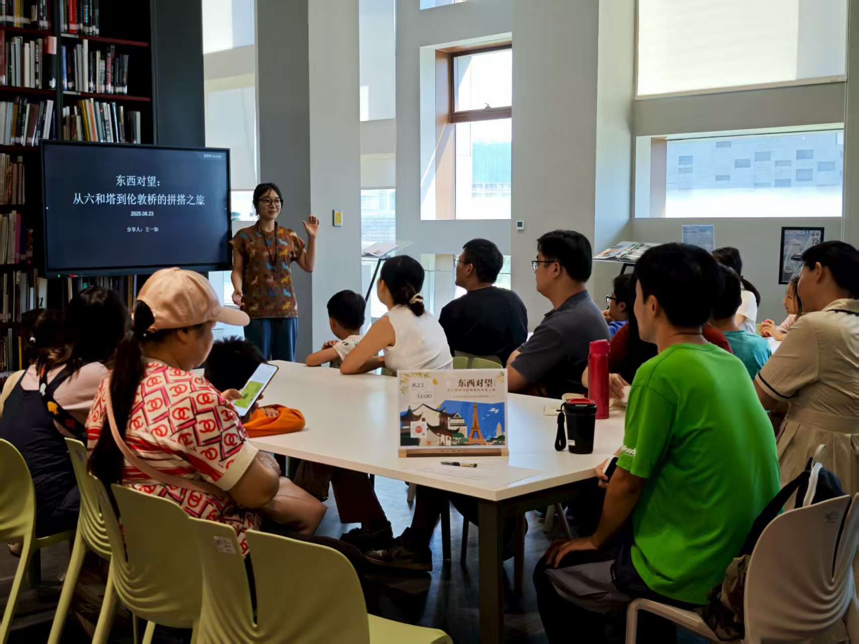 8月23日下午,书展系列互动活动“东西对望:从六和塔到伦敦桥的拼搭之旅”成功举办,吸引30余位读者参与。活动以“砖”与“铁”为线索,串联起东方建筑的韵味与西方建筑的力量。在讲解环节中,主办方通过30分钟的趣味讲述,揭示了苏州园林漏窗中的景致巧思、六和塔砖石下的镇潮传说、埃菲尔铁塔顶端的秘密房间,以及伦敦桥变迁中的铁石更迭与童谣渊源。