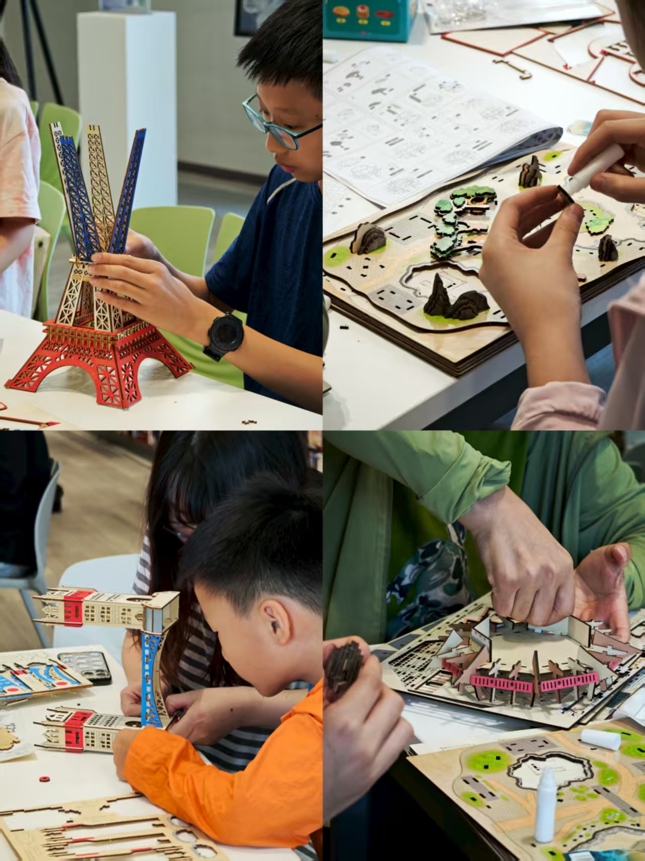 随后,读者分组进行建筑模型拼搭实践。在拼搭苏州园林模型时,大家特别注意漏窗的位置与形态,体会古代造园家“借景”的智慧;拼装六和塔时,则通过砖石结构的层叠感受其稳固性,遥想铁块镇基的古老传说;而在组装埃菲尔铁塔和伦敦桥模型的过程中,读者不仅理解了钢铁结构的力学美感,也更直观地感受到材料与技术如何塑造城市的天际线。