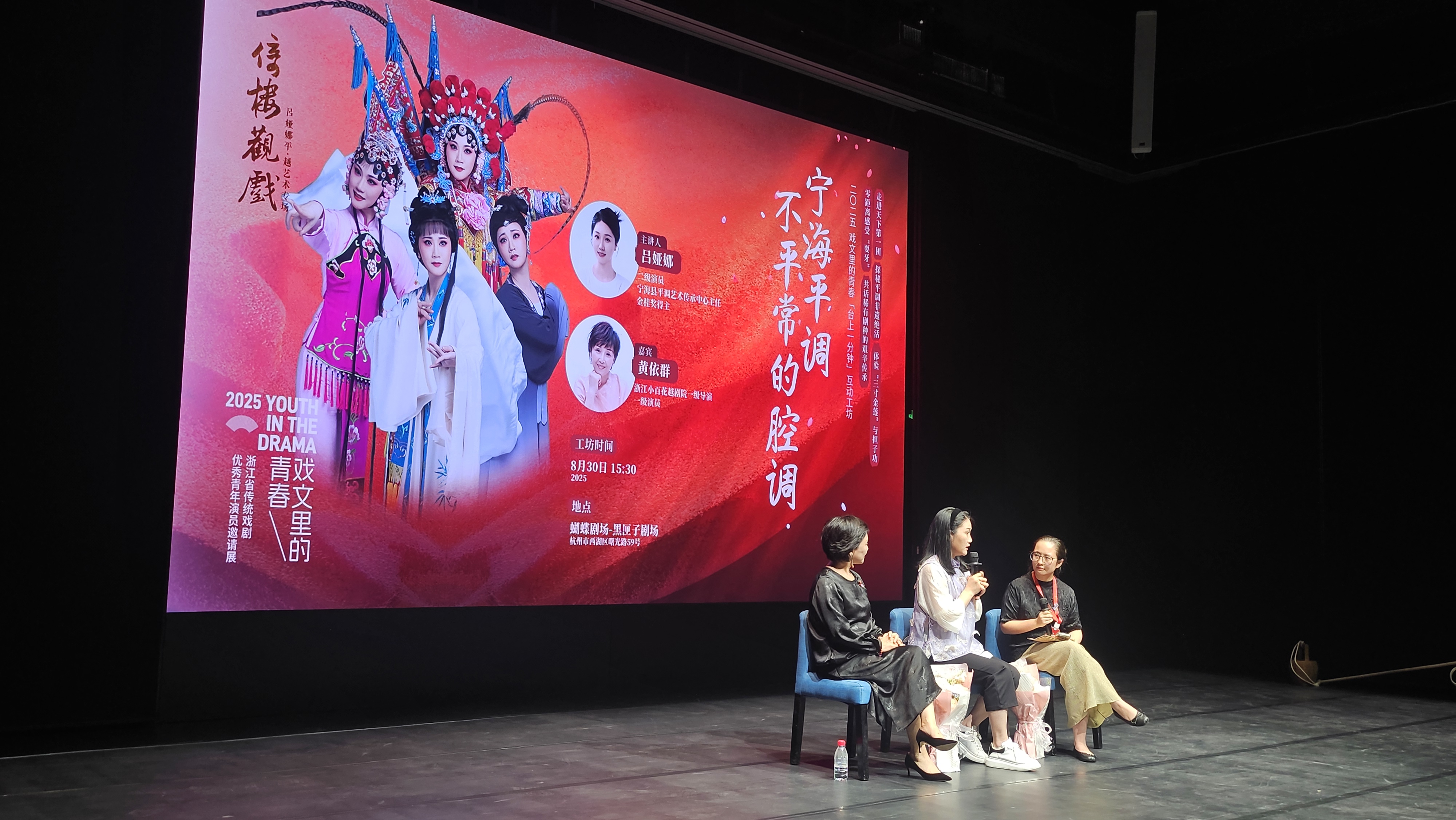 2025 年 8 月 30 日 下午,杭州蝴蝶剧场黑匣子剧场内气氛热烈,由百越蝴蝶剧场【台上一分钟】互动工坊与浙江图书馆【文澜艺韵】联合主办的 “宁海平调 —— 不平常的腔调” 分享会如期举行。观众们与国家级非物质文化遗产宁海平调的近距离对话,在金桂奖得主吕娅娜与越剧名家黄依群的精彩分享中,揭开了这门 400 年古老剧种的神秘面纱。