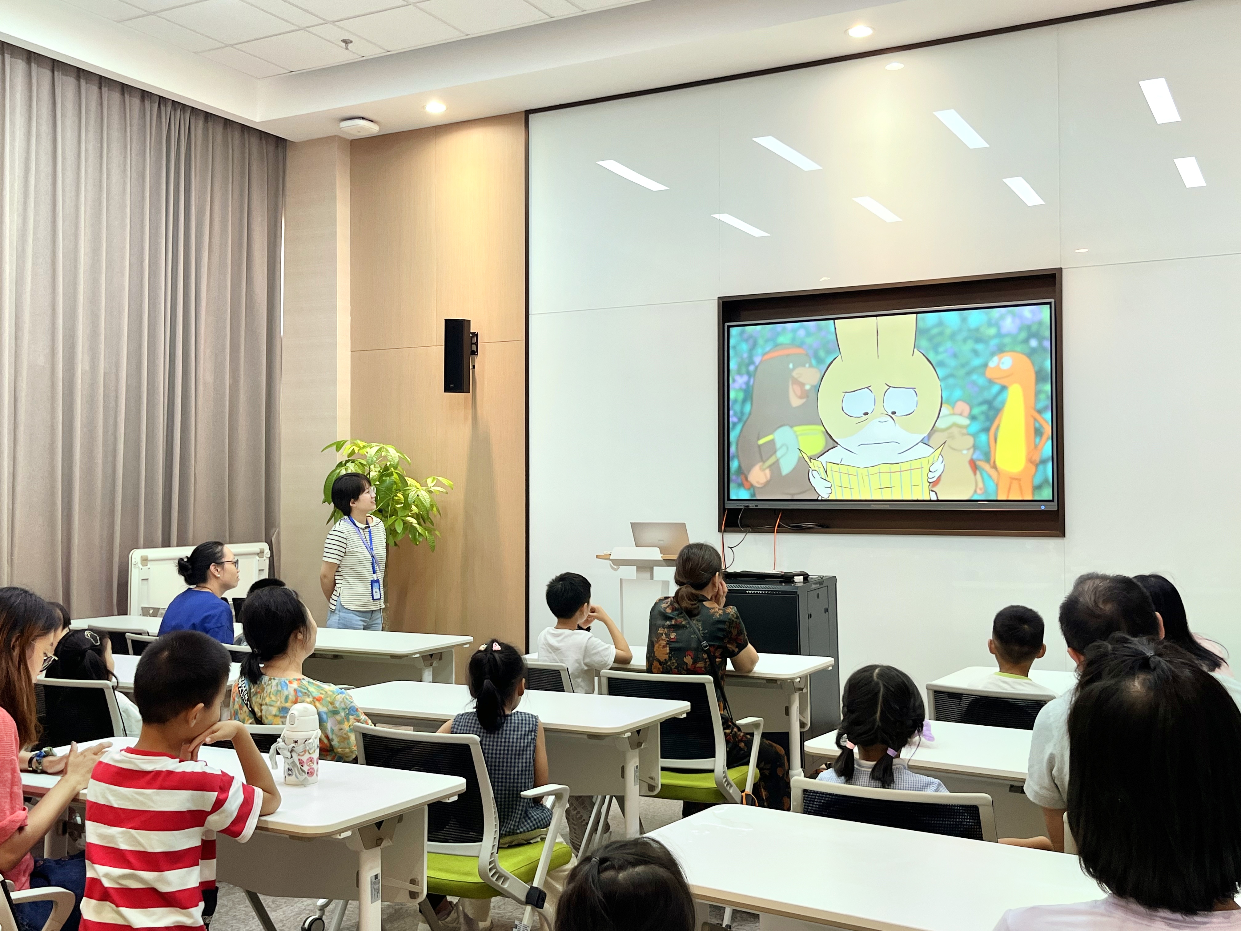 活动现场,大家共同观看了奥斯卡提名动画短片《洞穴》。该短片的呈现以视觉化的方式强化了活动主题——逃避并不能解决问题,勇敢面对才是成长的开始。最后,主讲馆员分享了两个克服过度害羞的“勇气小锦囊”:积极心理暗示和系统脱敏法,鼓励孩子们从小事做起,逐步练习表达,培养社交自信。