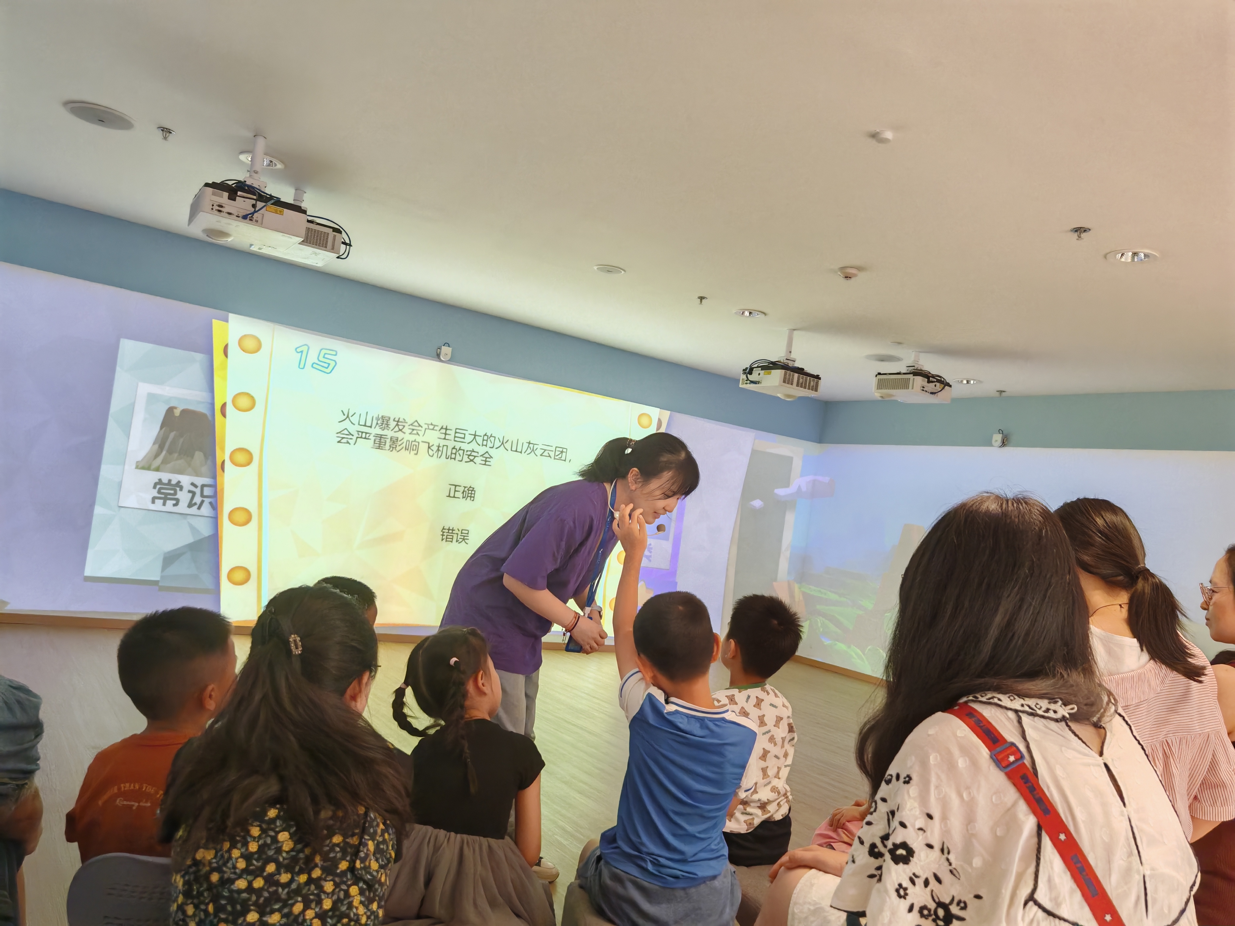 活动还在触屏操作中,增加了小读者与知识之间的互动:亲自体验为火山增温增压的过程,在“火山爆发”的模拟场景中感受自然的力量;收集“火山喷发”后形成的产物,在趣味游戏中认识火山带来的矿产资源;而紧张热烈的“火山知多少”知识竞答,更是让小读者们在欢声笑语中巩固了所学知识。