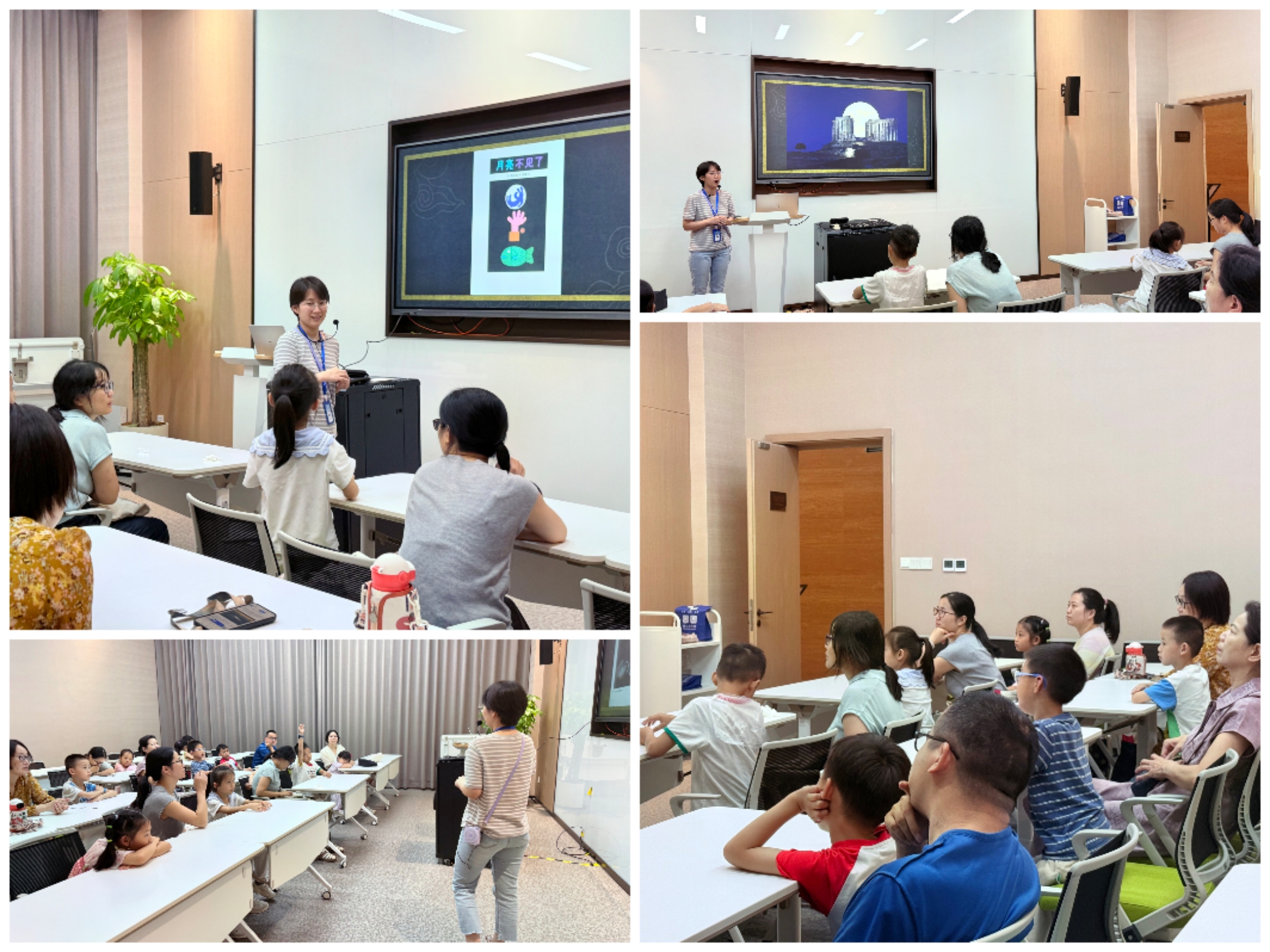 现场通过互动提问、视频插播、月相图解等多种形式,让孩子们在听故事的同时,了解了“新月”“满月”“上弦月”等月相概念,以及月亮对地球潮汐的影响。孩子们踊跃举手发言,积极猜测故事发展,展现出丰富的想象力和敏锐的观察力。