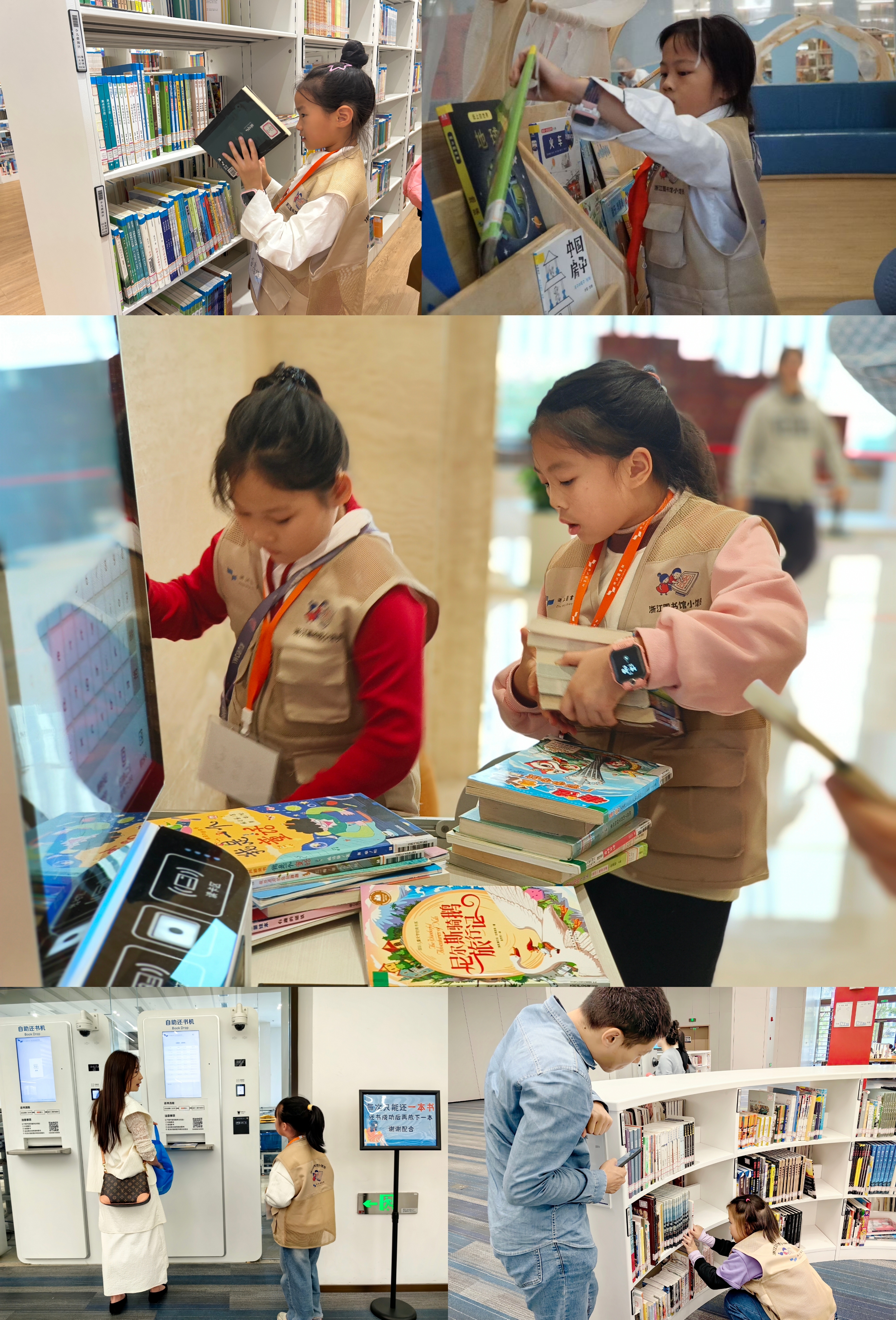 下午,小朋友们迎来的身份的转换,正式“上岗”成为小图书馆员。在老师细致的讲解和示范下,他们学习了自助借还机的工作流程以及整理书架的注意事项。随后,这些小馆员们便热情地投入到志愿服务中:耐心地将书车里的图书堆放整齐,主动引导不熟悉设备的读者操作机器,礼貌地提醒大家保持安静整洁的阅读环境……他们忙碌而认真的身影,成为了图书馆里一道格外温暖的风景。