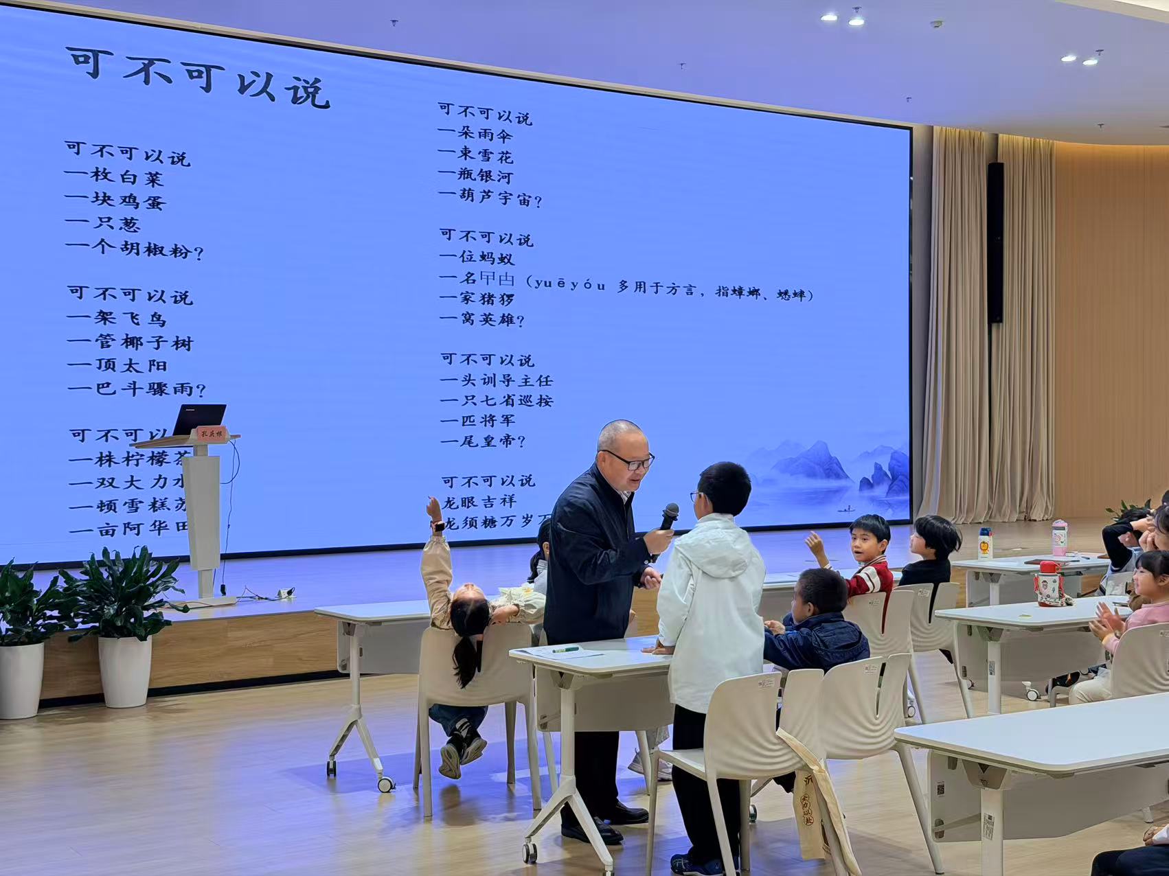 2025年11月9日上午10点,浙江图书馆之江馆二楼报告厅内充满了天马行空的想象与朗朗诗声。一场别开生面的童诗创作工作坊——“可不可以:以数量词为例”在此开展,西湖区作协副主席、诗人孔庆根老师带领孩子及其家长,进行了一场打破常规的语言诗意冒险。