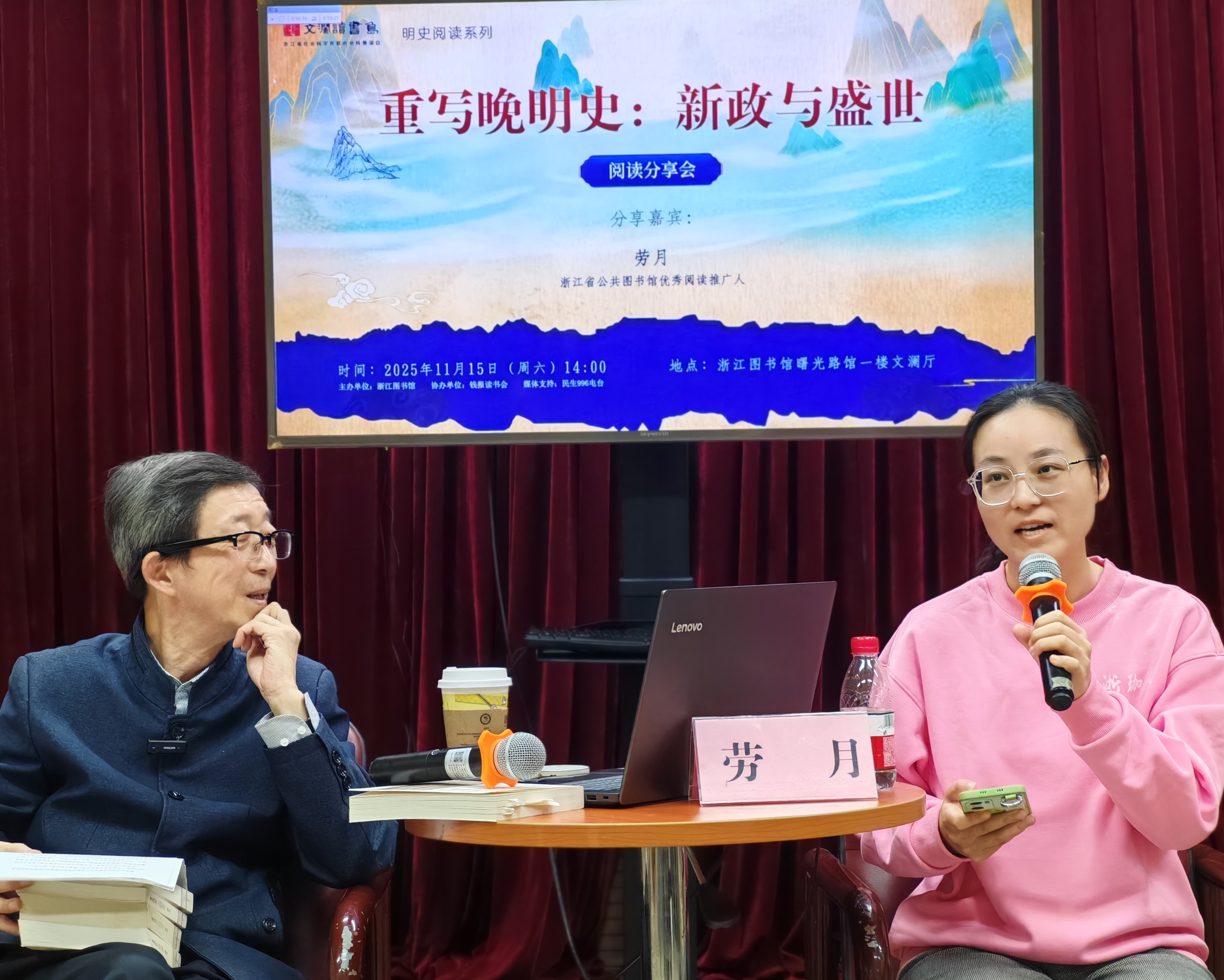 11月15日下午,文澜读书岛“明史阅读”第四场分享会在浙江图书馆曙光路馆文澜厅举行,书友们围绕樊树志《重写晚明史:新政与盛世》展开热烈讨论。