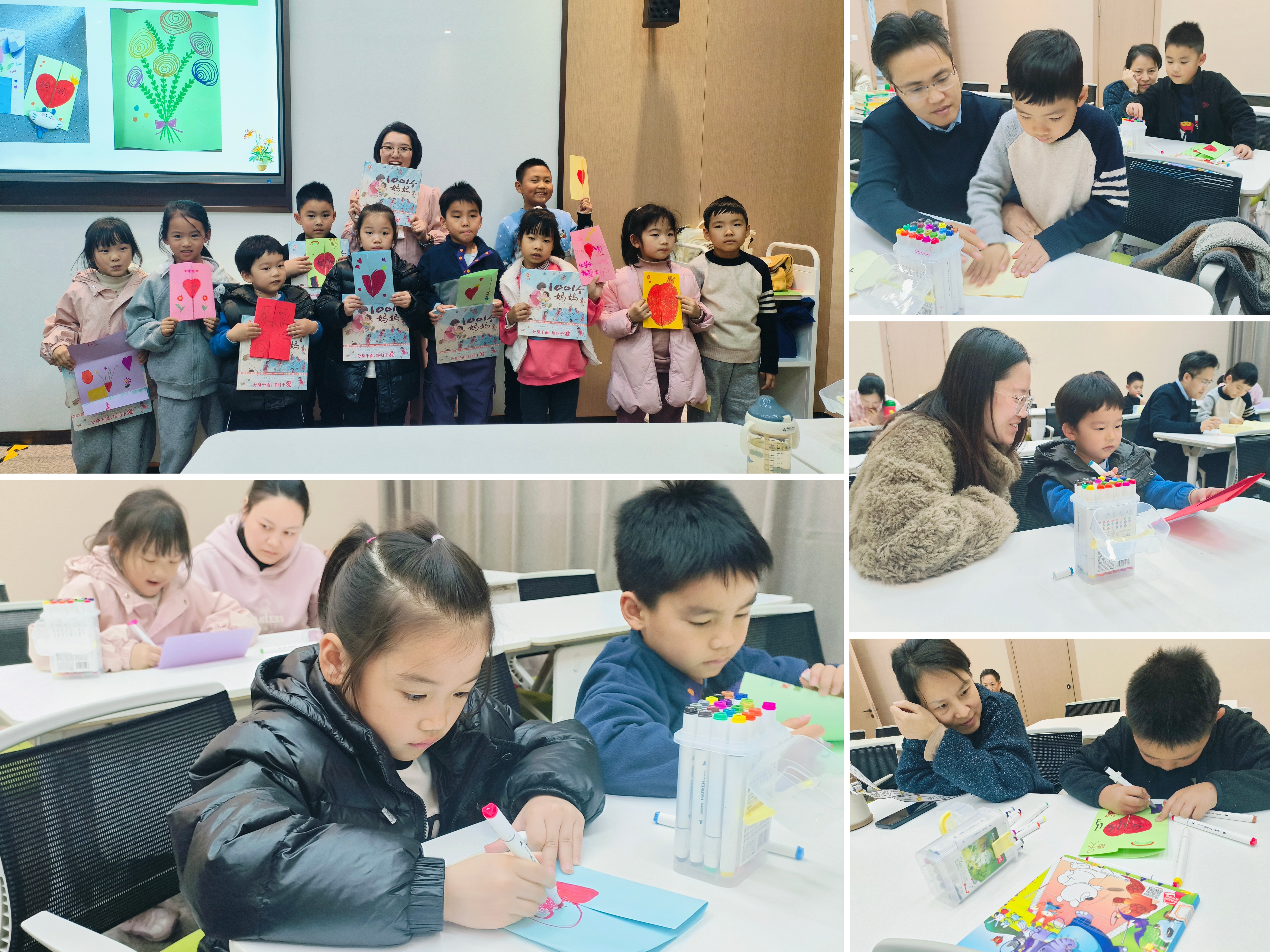 活动尾声,卢老师指导孩子们制作了承载着童真与感恩的贺卡,孩子们通过贺卡向妈妈表达了专属爱意,不少家长拿出手机记录这一温馨瞬间。
