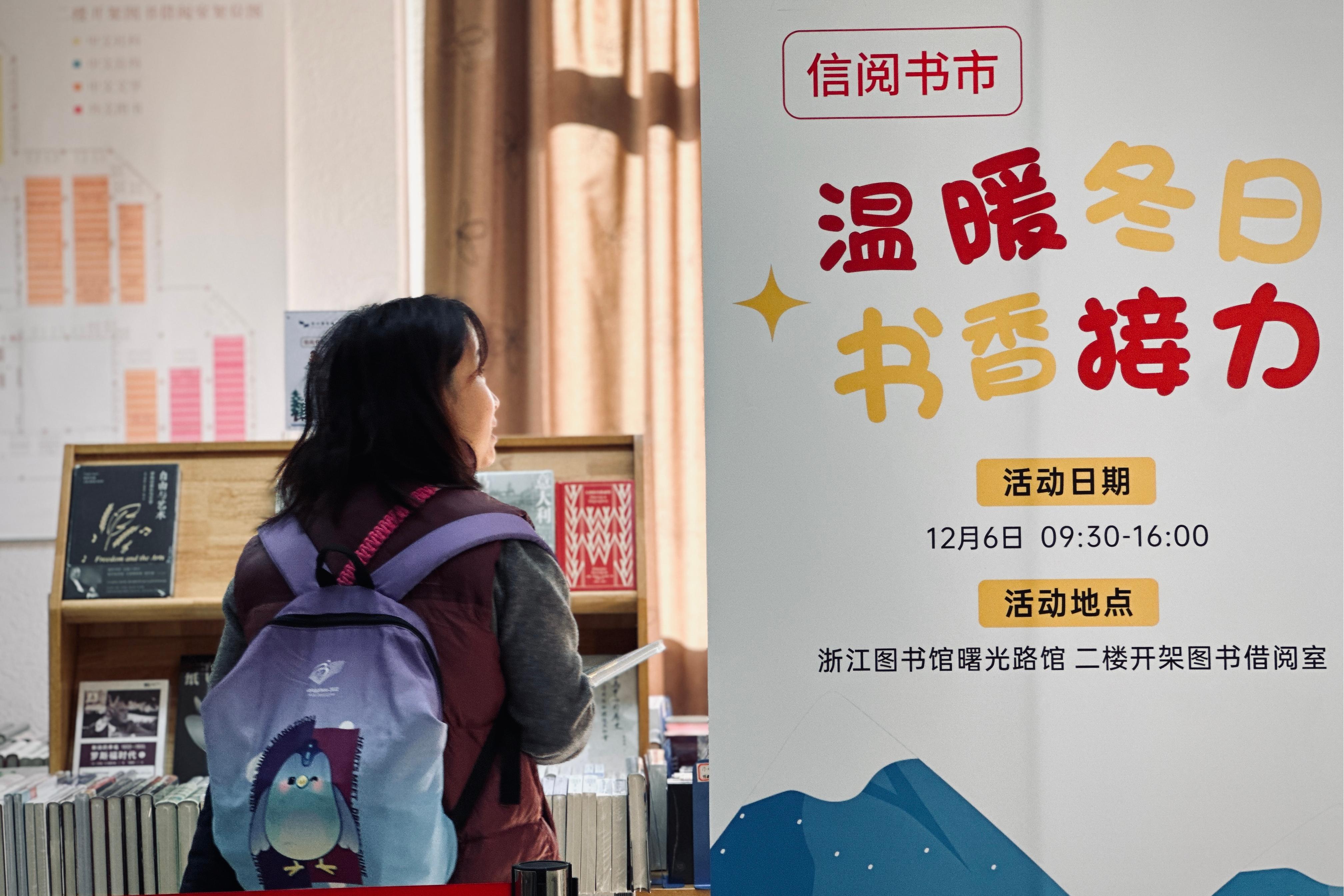 12月6日,浙江图书馆携手新华书店倾力打造的「信阅书市」在曙光路馆区圆满举办。此次活动以“温暖冬日·书香接力”为主题,为读者带来了一场别开生面的阅读盛宴。近千册2025年最新出版的精品图书现场供读者免费借阅,涵盖文学、历史、自科、艺术等多个领域,让读者在暖阳与书香中共度理想周末。