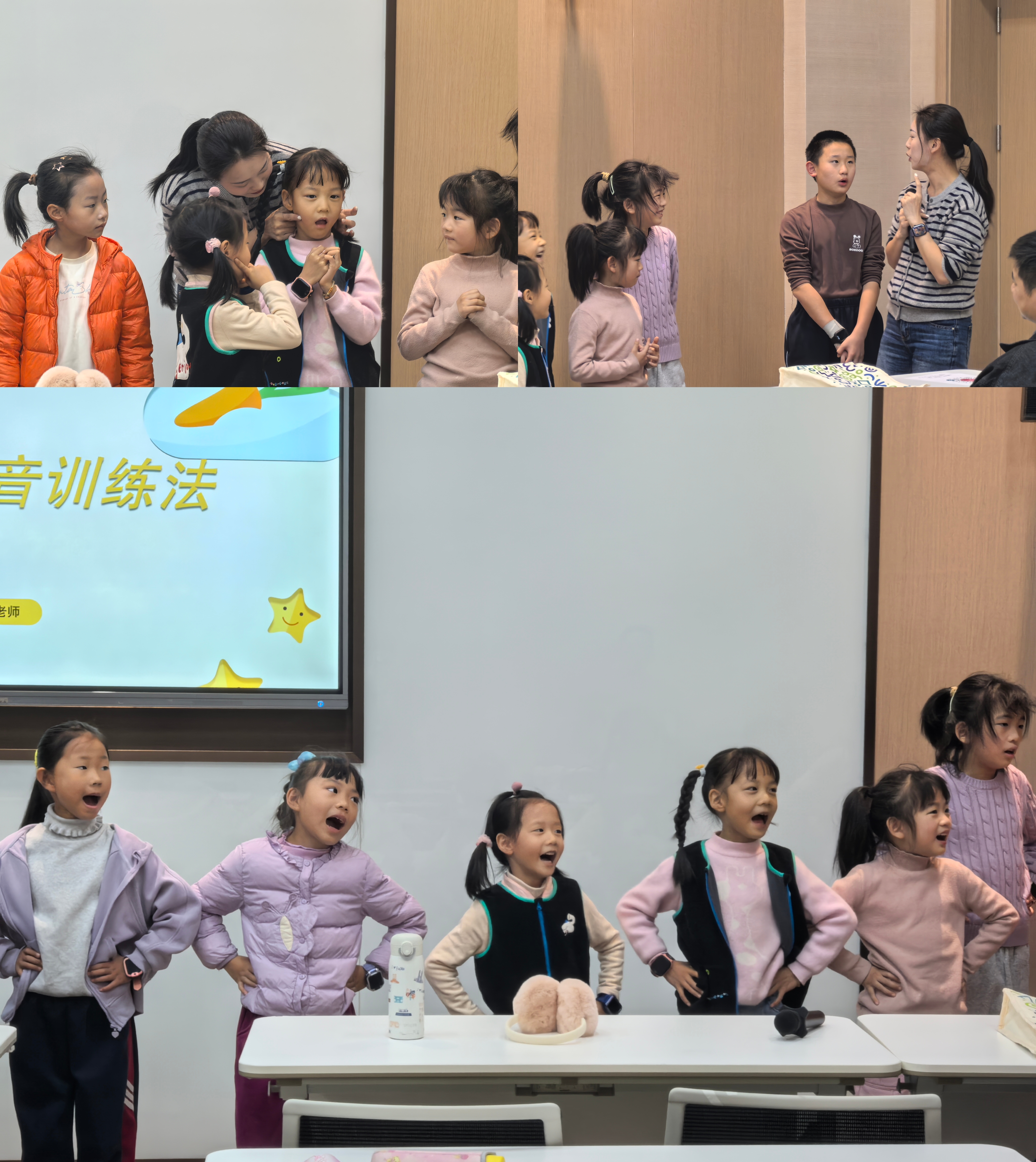 活动初,小雨老师带领小读者们回顾了第一期课程中学习的主持演讲标准站姿以及锻炼唇舌力量的口部操,随后便引入了本期活动的重点内容,即九宫格声音训练法。九宫格声音训练法将声音按照两个维度分别分为薄、中、厚及高、中、低,以此形成声音的九宫格,其中包括如小女孩般又薄又高的声音和如老人般又厚又低的声音。根据不同的角色特性,在朗诵时,通过声音的控制塑造角色,使角色更加鲜活,朗诵更加生动。