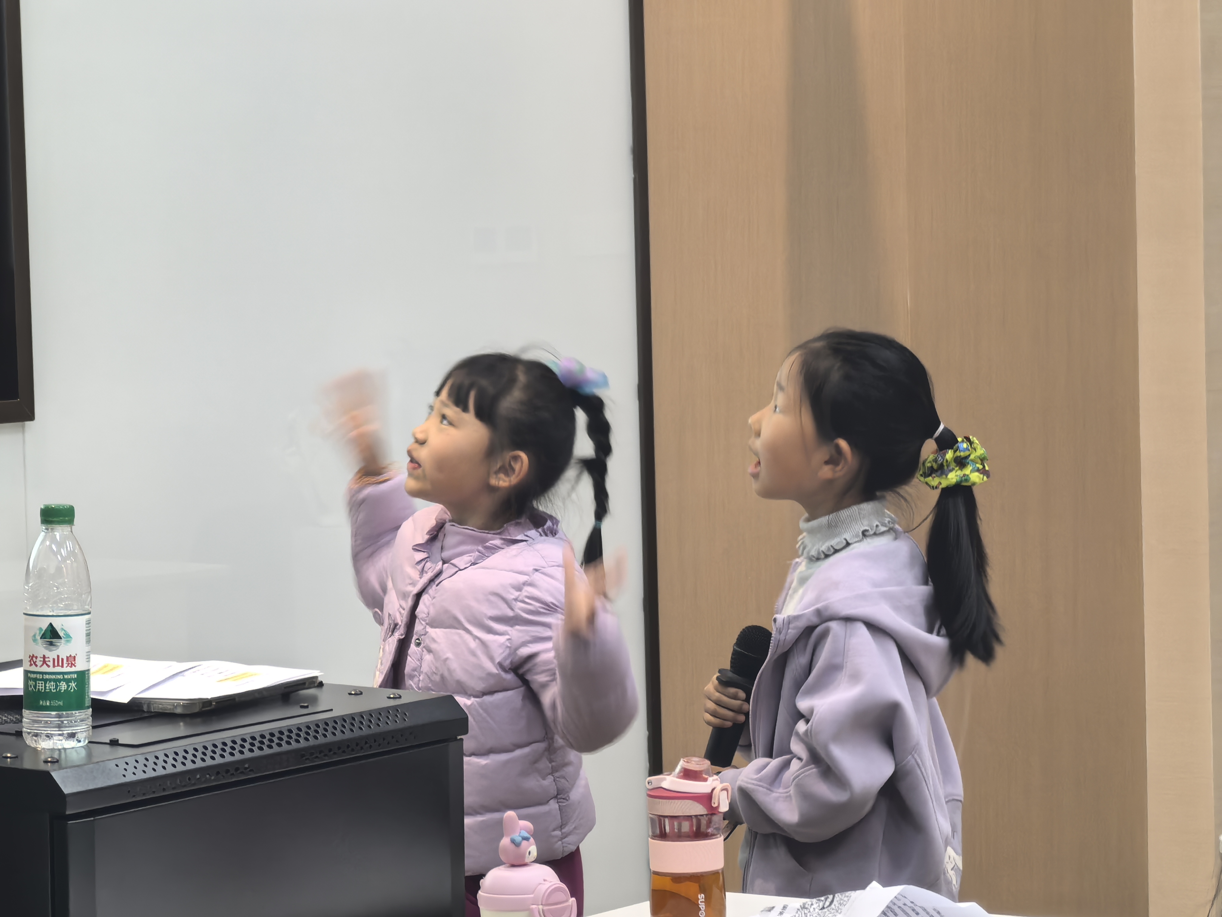在体会了各式声音的表现形式之后,小读者们便分别承担起了旁白和角色对白的任务,将《字典公公家里的争吵》的故事通过演绎的方式呈现在了我们的眼前。无论是夸张的肢体动作,还是不同角色的专属声线,都在和文字一起,共同搭建起这个充满童趣与想象的“字典公公之家”。
