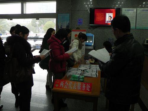 “两会”期间,桐乡市图书馆在代表委员驻地设立“两会”信息服务专场,免费办理图书借阅卡、发放嘉兴市数字图书阅览证、提供市民卡借阅功能开通等服务,并提供信息检索,为代表委员参政议政、提案议案补充完善提供文献信息咨询服务。同时,在馆服务窗口放置“聚焦2013桐乡两会特刊”,供读者查阅。