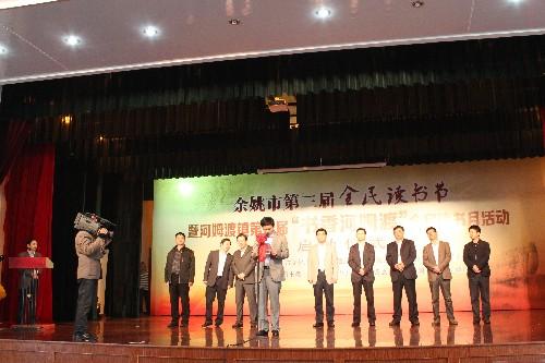 “4.23世界读书日”,余姚市在河姆渡镇翁方村文体广场举行余姚市“第三届全民读书节暨河姆渡镇第七届书香河姆渡全民读书月”启动仪式,号召全市各地各部门要以“快乐阅读 点亮梦想”为主题,贯彻落实党的十八大和余姚市委十四届三次全会精神,以建设社会主义核心价值体系为根本,广泛持续地推进全民阅读活动,不断提升群众的文化道德素养,促进余姚市文化大发展大繁荣,为推进美丽富裕幸福新余姚建设提供强有力的精神动力和智力支撑。余姚市委常委、宣传部长潘银浩,副市长陈为能出席启动仪式。