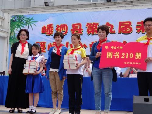 启动仪式上,县文广局领导为嵊山小学赠送了体育用品,县图书馆领导为嵊山小学赠送了200余册图书。嵊山小学全体师生进行了嵊泗渔歌、嵊泗民谚和经典诵读等主题表演,为即将到来的“六一”儿童节营造了喜庆气氛。