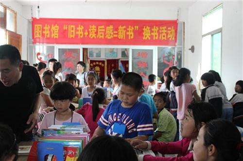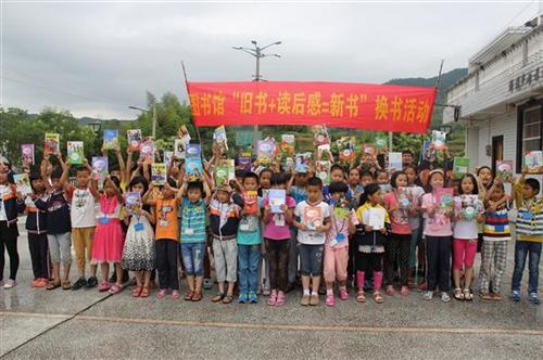 近日,由青田县图书馆主办的“旧书+读后感=新书”换书活动在海溪乡海溪村农家书屋如火如荼的举行。本次活动共吸引了60位三至六年级的小学生,他们都拿了各自的课外读物来到书屋,介绍了自己这本书及从这本书了看到了什么,学到什么,并将之写在书末。把写有读后感的书捐赠到农家书屋,就可以在图书馆新带来的300册适合少儿阅读的课外读物里选择自己喜爱的书籍,或者从图书馆工作人员中领取购书卷到县新华书店再自行选书。所有的老师同学都对这次活动表示了强烈的赞赏,小读者们都在现场选到了自己喜爱的图书。图书馆也把余下的240册新书也赠送给书屋,让小读者们看完自己选中的新书后还可以经常来书屋借阅其余的课外读物。