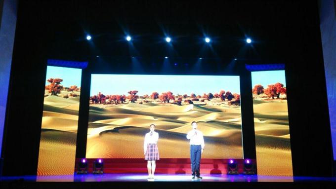 “有谁能如此顽强?耐旱、耐寒、耐盐碱,抗风、抗沙、抗祸殃……根深十米汲取营养雨后三年枝发叶长,即使旱死二十余载,遇水又有新芽绽放……”一首《胡杨礼赞》在简铭、胡可欣两位同学(2位同学均来自锦绣实验学校)的深情朗诵下得到了现场评委和现场观众的阵阵掌声。