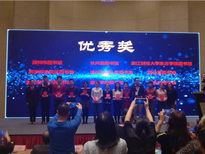 图为南浔图书馆参赛选手(左三)上台领奖