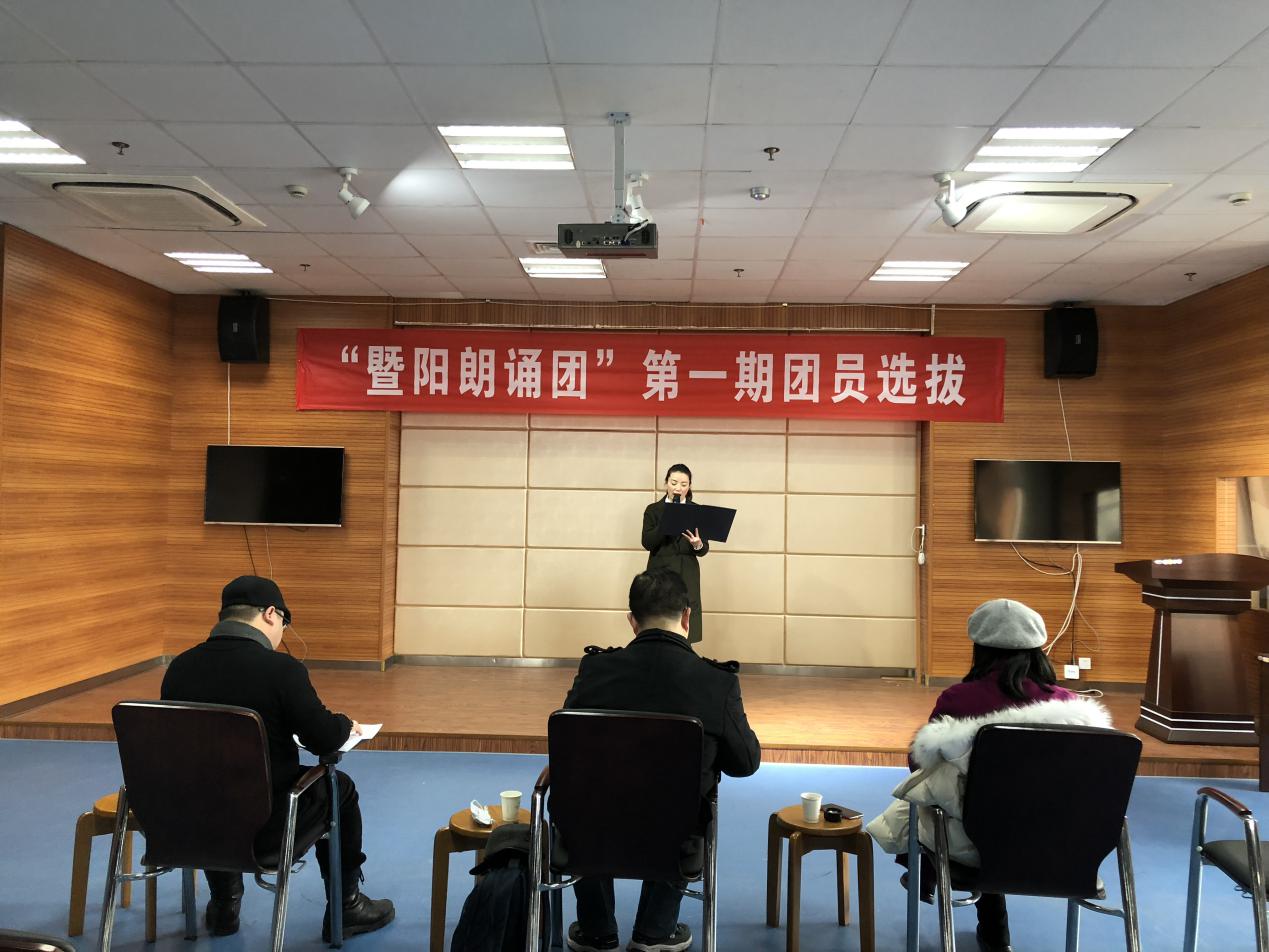 朗诵艺术是助推全民阅读、繁荣文学艺术创作、丰富民众文化生活,提升社会文化品位,全力助推“书香暨阳”的有力形式。“暨阳朗诵团”是我市朗读爱好者朗读交流、学习、提高的平台,为纯公益团体,本次计划招募团员30名,经过报名、面试等一系列选拔流程,“暨阳朗诵团”第一期团员招募工作圆满完成。