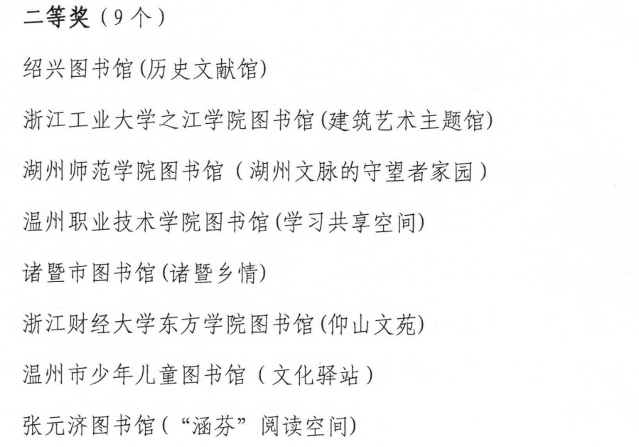 为鼓励我省各类各级图书馆在全面开展“全民阅读”工作中,以阅读创新活动为载体、以馆藏特色文献为支撑,积极探索图书馆阅读推广空间建设,挖掘和发现一批创新性强、阅读成效显著、特色文化明显的图书馆阅读推广人文空间,省图书馆学会在全省各类各级图书馆当中广泛征集相关案例进行评选,最终产生了一等奖6个,二等奖9个,三等奖15个,以及2个组织奖。