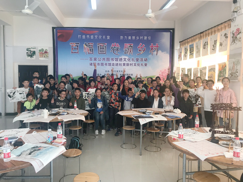 为发挥公共图书馆的服务职能,推动全省农村文化礼堂建设与发展,助力美丽乡村建设,诸暨图书馆于10月28日举办“百幅画卷颂乡村”——诸暨图书馆走进杜黄新村文化礼堂活动,本次活动共吸引了100多名学生、村民及绘画爱好者前往参加。
