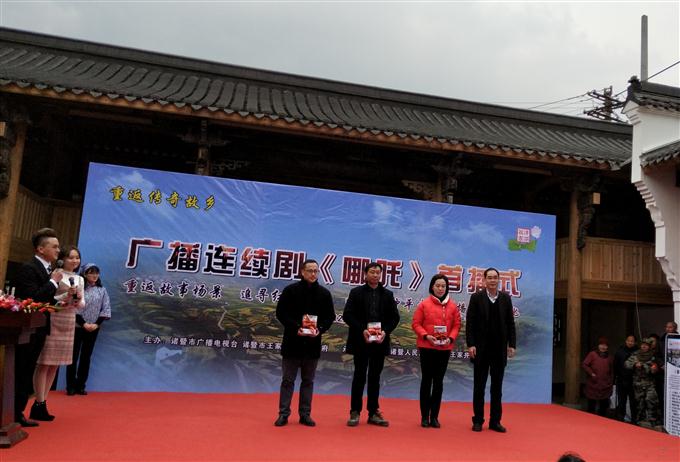 乡村振兴,文化先行。12月28日,由王家井镇政府、诸暨市广播电视台主办的广播小说连续剧《哪吒》首播式在王家井镇祝家村隆重举行。诸暨市副市长林成高、市委宣传部副部长孙陈超、市文广新局局长何永钢、市文联主席金海炯、市广播电视台台长陈仲明、以及王家井镇有关领导出席活动。作为受邀单位之一,诸暨市图书馆馆长郑永前往参加。活动中,林成高副市长上台向我馆赠送了广播剧《哪吒》的音碟。