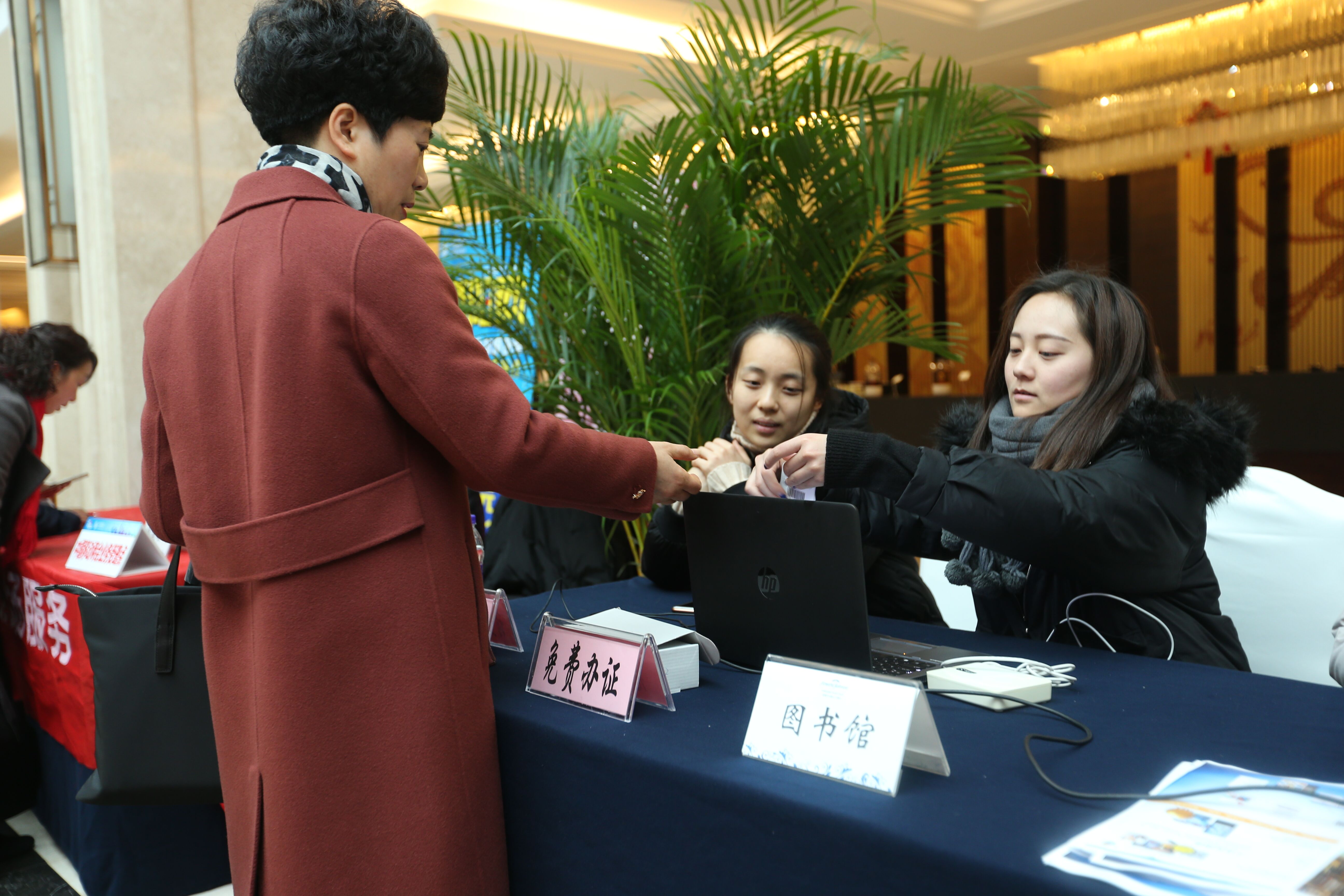 为充分发挥图书馆的服务职能,让大家更好的了解图书馆的业务,2019年1月9日至10日,诸暨市图书馆在市“两会”代表委员驻地同方豪生大酒店和开元名都大酒店设立信息服务点,为代表委员提供现场办证、数字移动图书、电子阅读下载等多方位信息服务。
