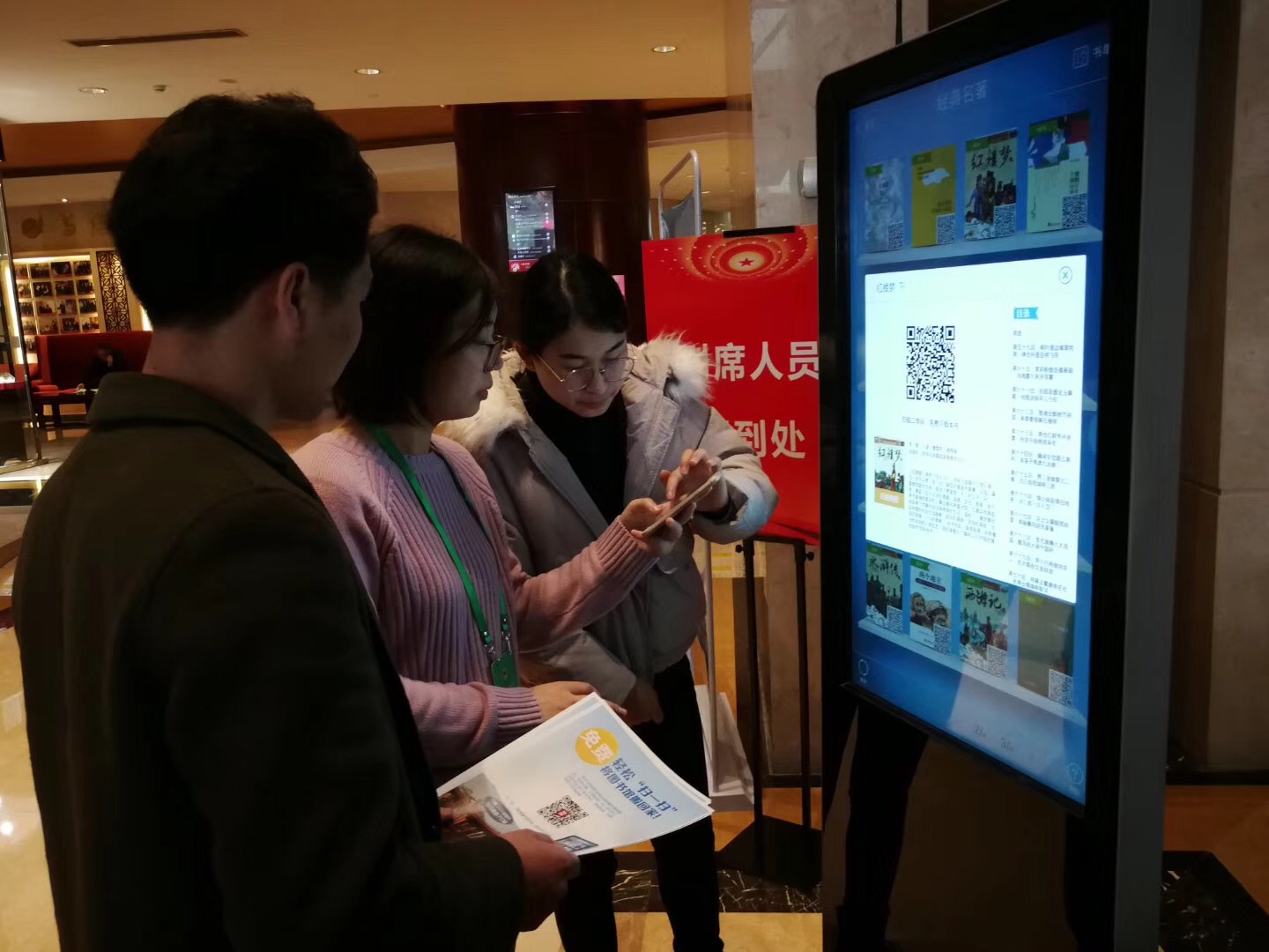 此次两会服务,诸暨市图书馆在会议现场设立了电子图书借阅机,内含图书馆专门为两会组织的我省各地依法治国、改革开放40年创新成果等多个专题信息,这些信息可以现场点读,也可扫描二维码下载到手机上阅读。此外,借阅机还提供了3000多种电子图书的下载服务,以满足代表、委员对数字化阅读和随时随地获取文化信息的需求。