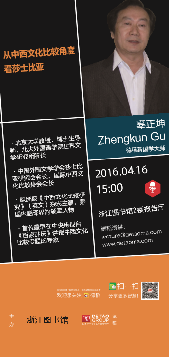 辜正坤,北京大学教授、博士生导师、北大外国语学院世界文学研究所所长。获国务院颁发特殊贡献专家称号,兼任国际中西文化比较协会会长、中国外国文学学会莎士比亚研究会会长,中华民族文化促进会常务理事、北京大学文化文学与翻译研究会会长等。曾应邀赴日本东京大学、德国自由大学、美国瓦西塔大学等作传播国学知识的学术讲座。曾任联合国教科文总部(巴黎)和联合国日内瓦总部翻译。辜教授是首位最早在中央电视台《百家讲坛》讲授中西文化比较专题的专家。