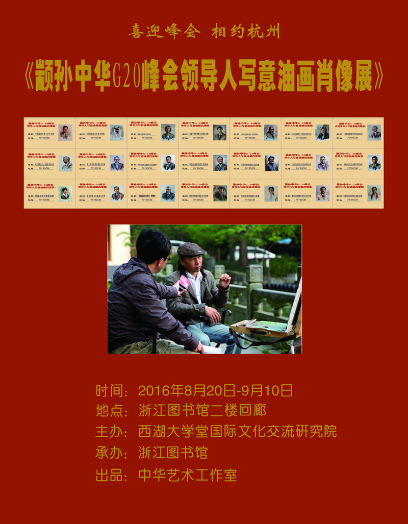 8月20日,美丽的杭州即将迎来举世瞩目的G20峰会之际,《颛孙中华G20峰会领导人写意油画肖像展》在浙江图书馆开展。