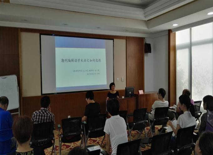 图为朱小燕主任作《期刊编辑谈学术论文如何选题》
