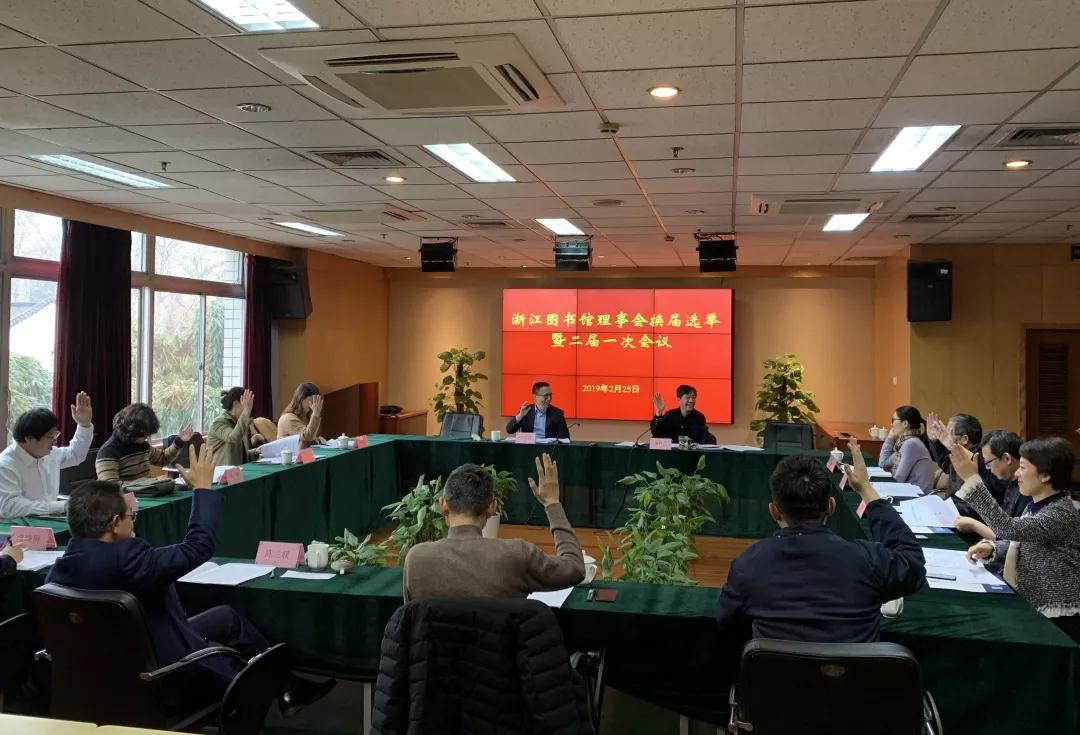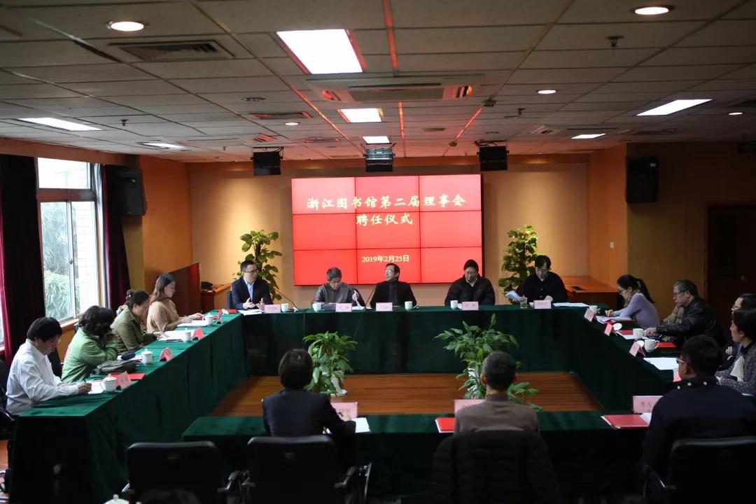 2019年2月25日下午,浙江图书馆理事会换届选举暨二届一次会议在曙光路总馆召开。会议由执行理事、浙江图书馆馆长褚树青主持。随后举行第二届理事会聘任仪式,省文化和旅游厅副厅长刁玉泉、政策法规处处长程钢、公共服务处处长倪巍等领导出席。