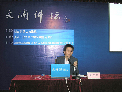 3月15日是消费者权益日,浙江图书馆“文澜讲坛”与杭州市依法治市普法教育领导小组办公室、杭州市司法局联合举办一场维权讲座,主题为:“明白消费合法维权”,由浙江工业大学法学院毛卫民教授主讲,到场听众一百余人。